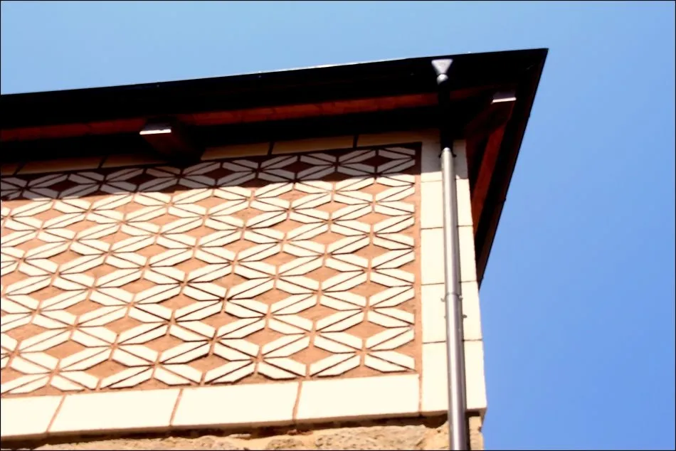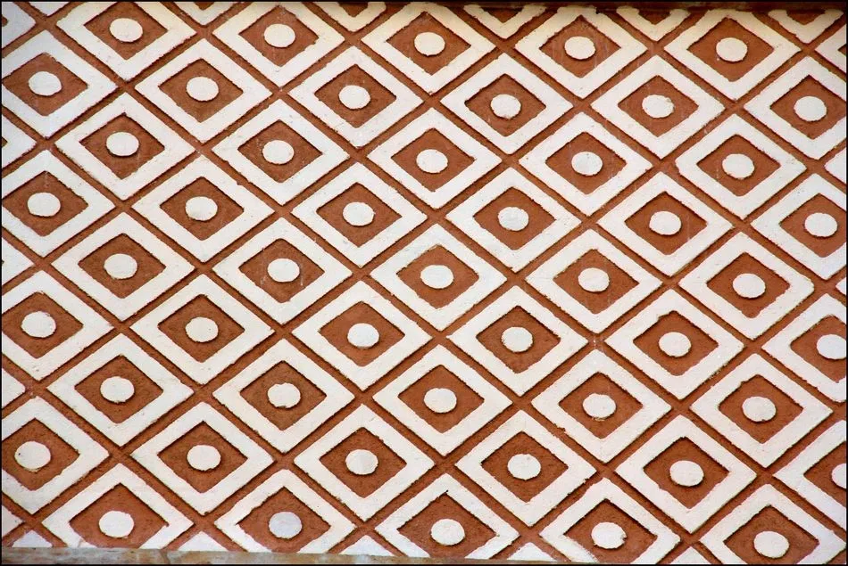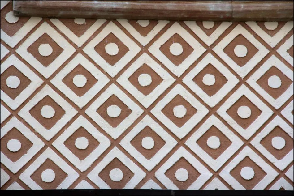 El esgrafiado fue desde siempre una forma de disimular la falta de sillares de piedra. El ladrillo era considerado pobre y falto de adorno. De ahí que la pared se cubriera de revoque, una dos, tres capas de diverso color y fuera después labrado, raspado, trabajado con incisiones con el buril y el cincel para dibujar la piedra inexistente, la geometría creativa que se sucede en forma de hexágonos, rectángulos, triángulos, grecas que nos devuelven el gusto cretense. Es una forma de ornamentación que también protege al muro de la humedad y el frío mesetario. Una exquisita forma de aislamiento de la que saben mucho en nuestra Sierra de Francia, donde el ladrillo y el adobe pobre sustentado por vigas de madera se cubría de revoque y esgrafiado que artistas como Florencio Maíllo, quieren recuperar.
