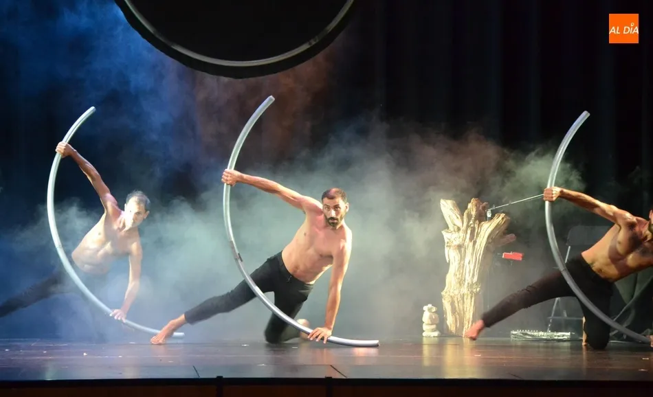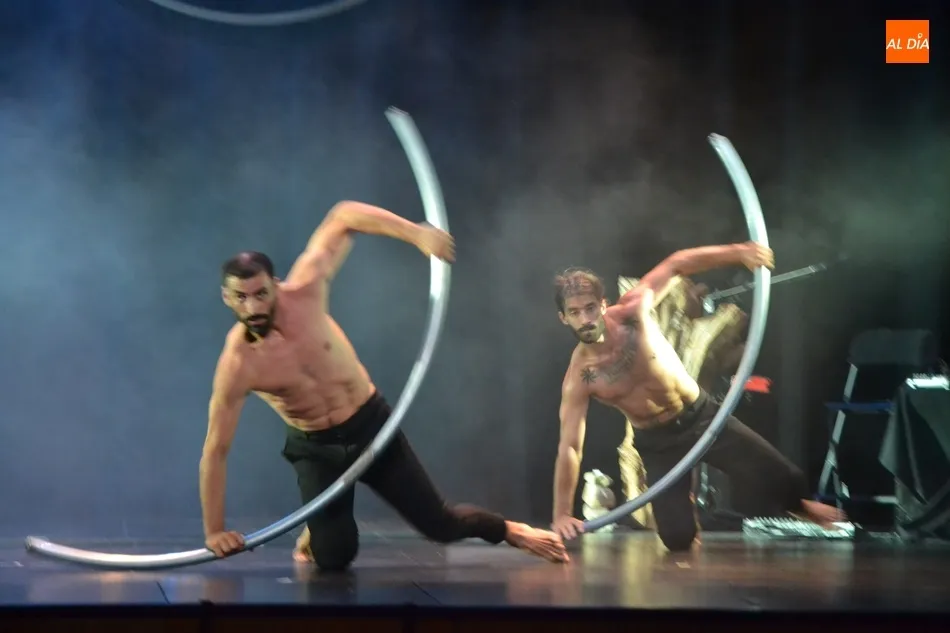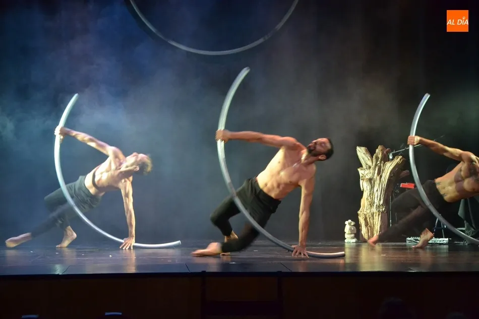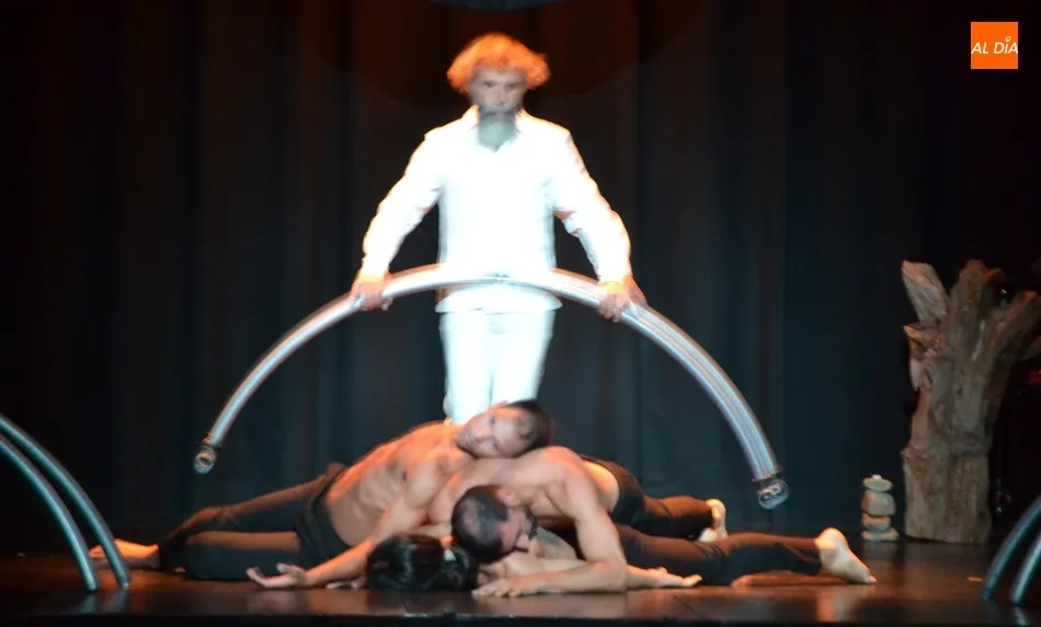 El montaje, en el que la danza se entremezcló con el circo y la música original en directo, corrió a cargo de la compañía salmantina David Vento Theater, estando sobre el escenario como bailarines David Ventosa, Francisco Lorenzo y Milky Lee; y como músico, compositor e intérprete Silberius de Ura, todos ellos para ?contar la historia del ser humano?.