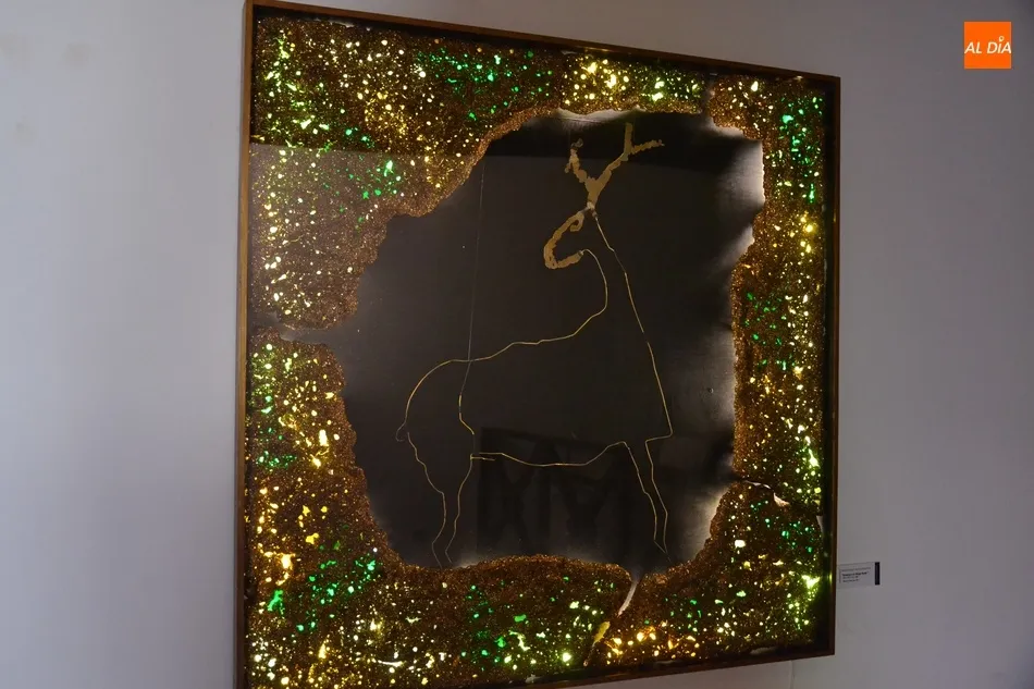 Marcela Navascués vio que podía aplicar la joyería a las ?joyas del pasado? de Foz Côa, para crear una serie de grandes cuadros negros, con luces vibrantes, inspirados en la fuerza y la luz que desprenden los grabados paleolíticos. La muestra se pudo ver por primera vez el año pasado en Foz Côa, siendo ahora invitada a exponer de nuevo para celebrar los 10 años de Siega Verde como Patrimonio Mundial, para lo cual ha creado tres piezas nuevas (no ha tenido tiempo de hacer más, según comentó), una de ellas el venado que es el símbolo de Siega Verde, y las otras dos sendos perros que le gustaron. Asimismo, la exposición incluye un par de maquetas para crear grandes instalaciones.