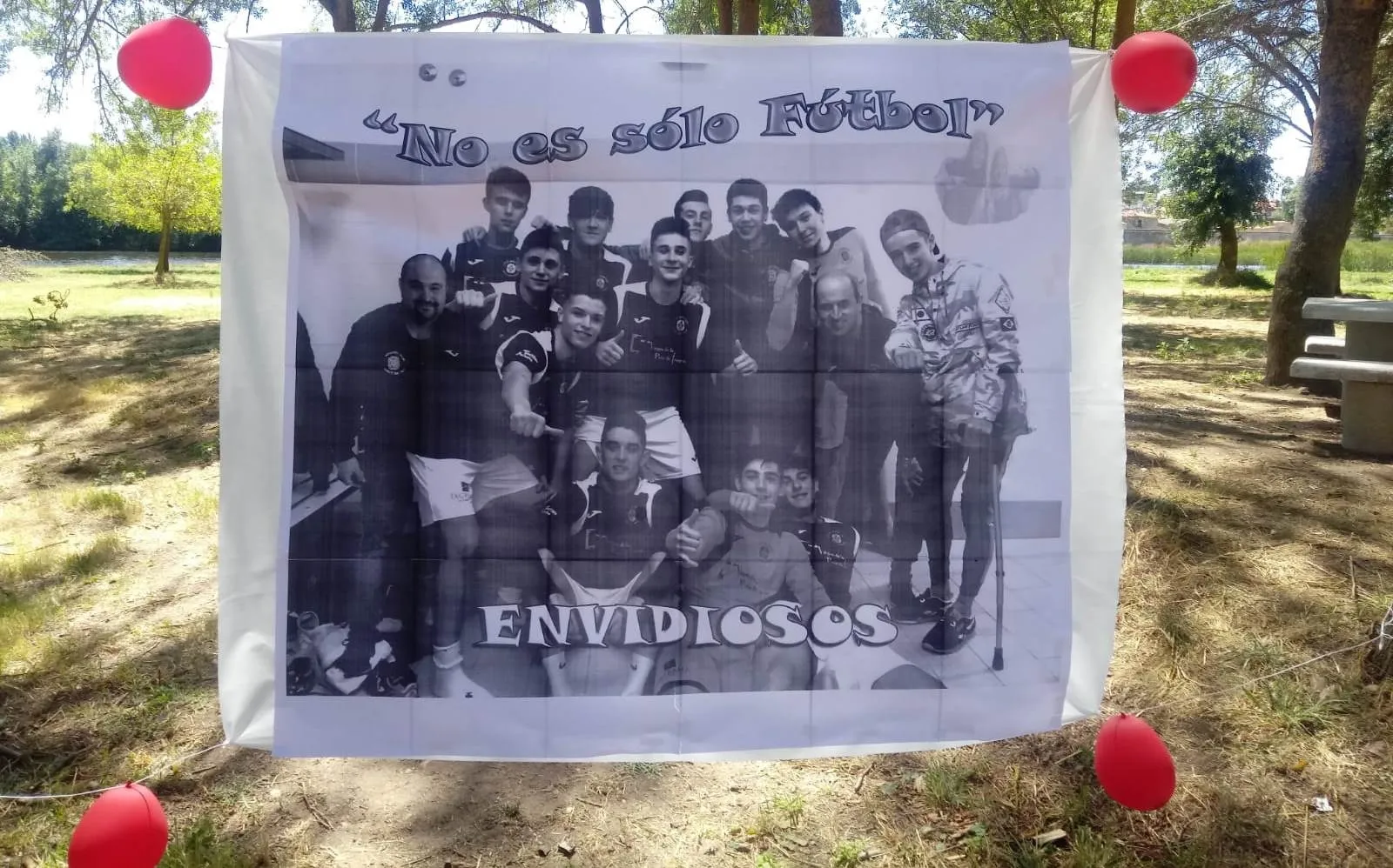 La mayoría de ellos aparecían en una gran pancarta que colocaron en el río con el lema No es sólo fútbol, ya que son como una piña, y con la leyenda ?Envidiosos?, su grito de guerra antes de empezar los partidos. Los jugadores regalaron a los miembros del cuerpo técnico una taza con fotos con diferentes motivos.