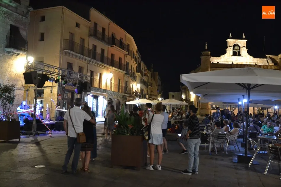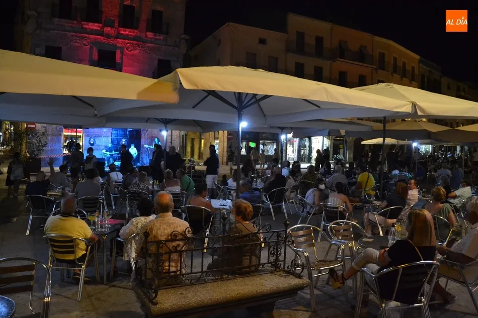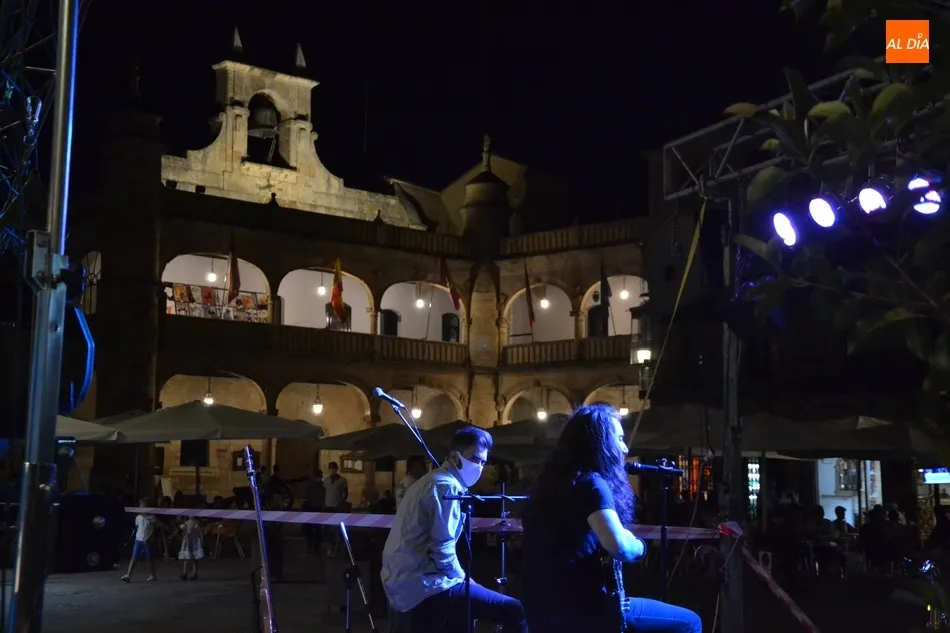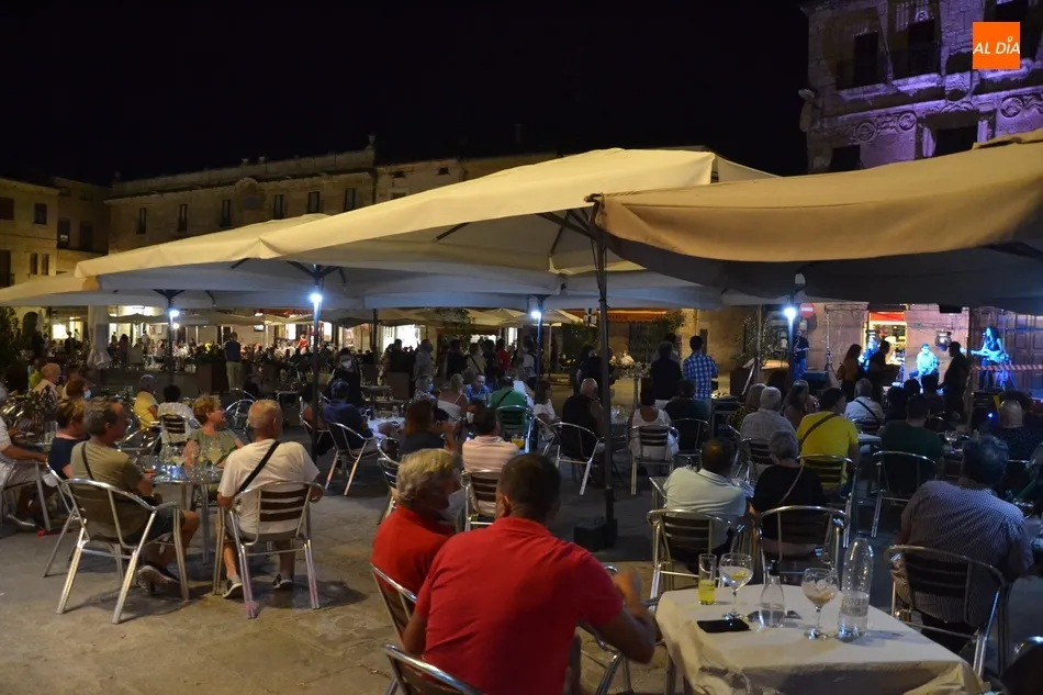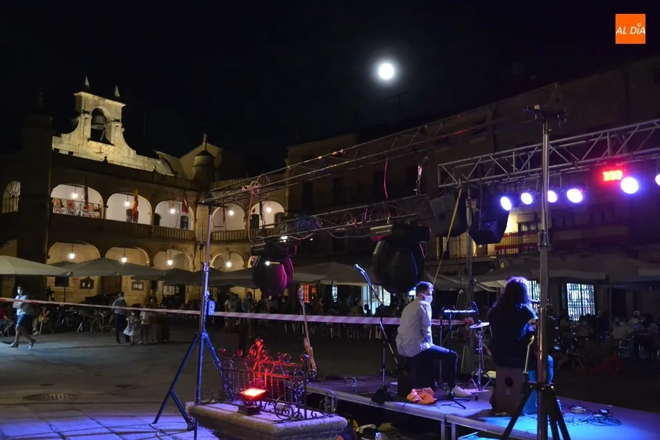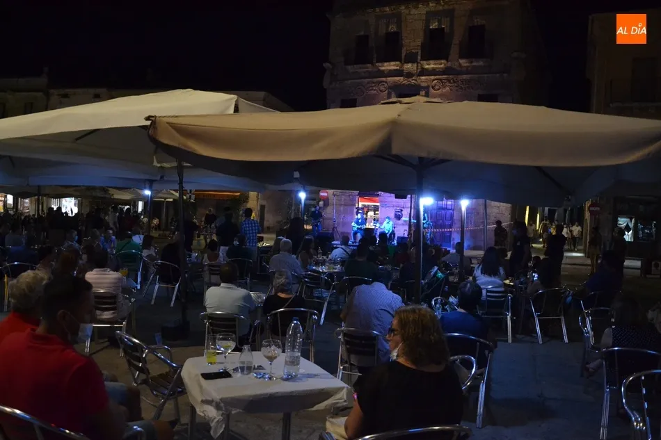 La Plaza Mayor albergó en la noche del domingo el estreno del ciclo de amenización de terrazas que ha preparado la Concejalía de Festejos del Ayuntamiento de Ciudad Rodrigo para animar musicalmente hablando las noches veraniegas a falta de grandes conciertos.