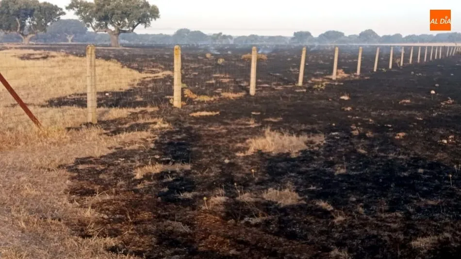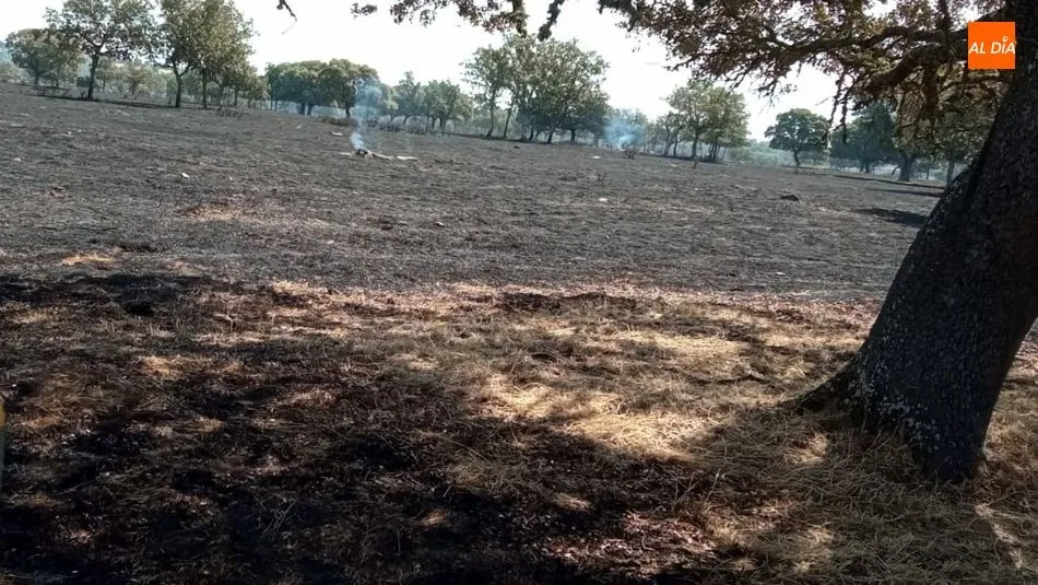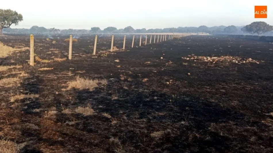 Un nuevo incendio, el segundo en dos semanas, se ha declarado en el término municipal de Cerralbo, que ha dejado arrasada una superficie de unas 100 hectáreas de pasto con arbolado.