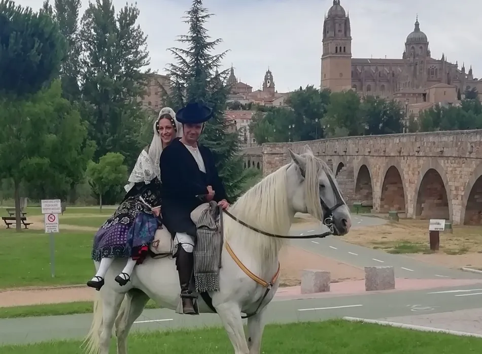 Este fin de semana Salamanca ha sido escenario de un reportaje fotográfico con el que mostrar la riqueza etnográfica de la cultura charra como herramienta para promocionar el Turismo Cultural salmantino en Jalisco y México. Un grupo de caballistas charros con caballos engalanados con aperos del siglo XVI y sus charras a grupera han posado en enclaves con simbología y belleza de la ciudad, como el puente romano, donde se celebraban las ferias de ganado; la Catedral; el Convento de San Esteban y la Universidad. Esta acción se enmarca dentro del evento cultural ?Sentir Charros. Jalisco-Salamanca 2020?, un hermanamiento que agrupa la cultura charra de ambos lados del Atlántico para poner en valor el marco histórico-artístico y turístico de la charrería.