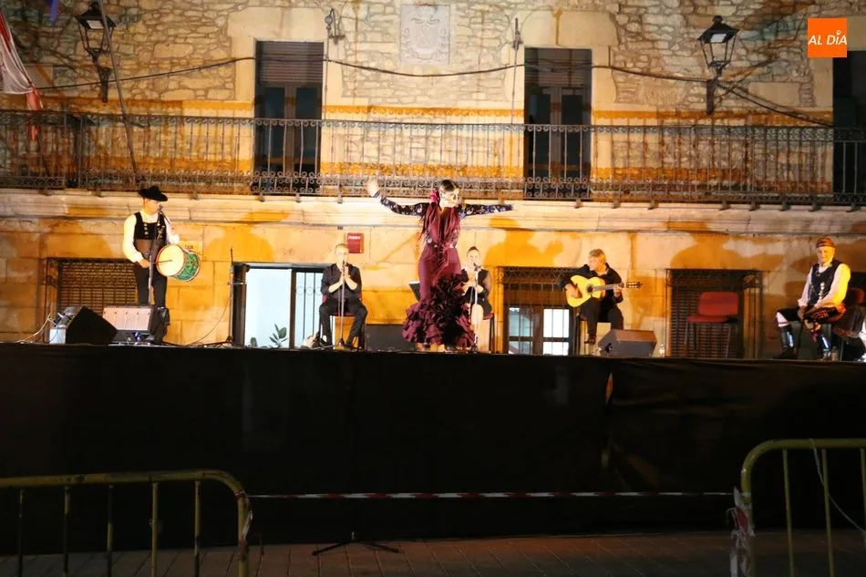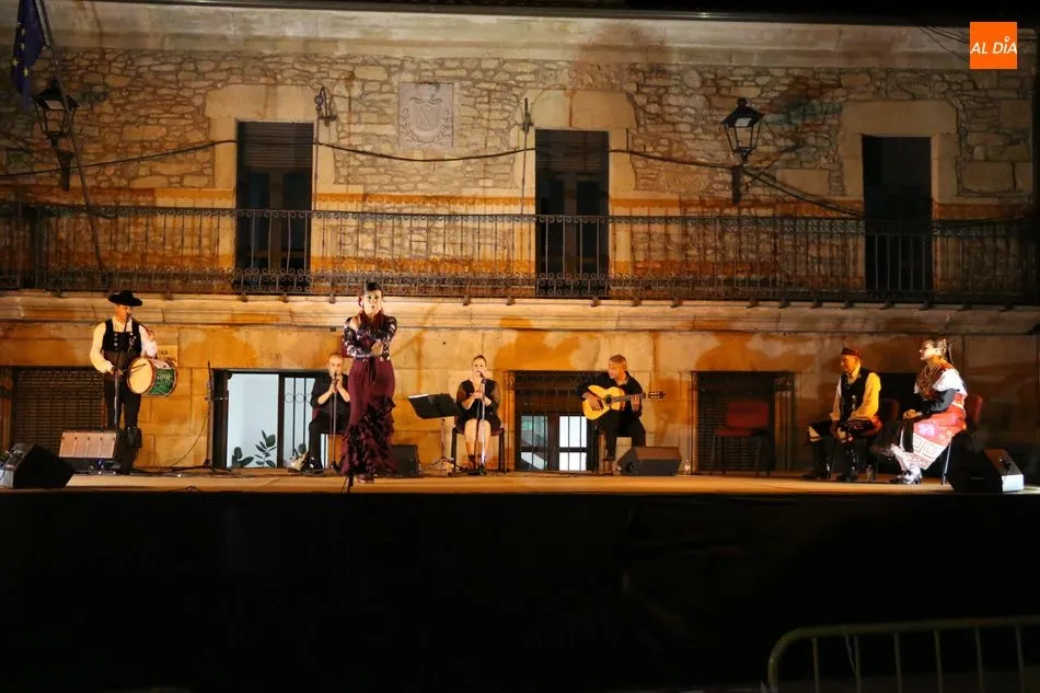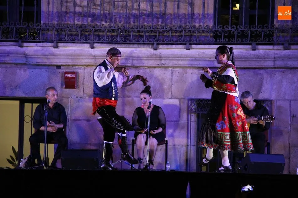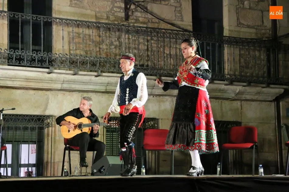 De la mano del tamborilero mirobrigense José Ramón Cid Cebrián, el cuadro de charros y gitanos interpretó temas tan populares como El Burro de Villarino, La vaca Ventanera, La Chana o El vito, por citar algunos de los más conocidos, y todos en perfecto ?maridaje?, con los sonidos charros de la gaita y el tamboril de José Ramón Cid y la guitarra de Nano Serrano, y las voces flamencas de Aarón Salazar y Dalila Salazar, para que bailaran Alicia Almeida, a lo gitano, y Poldo, de Mogarraz, y María Ángeles, de La Alberca, a lo charro.