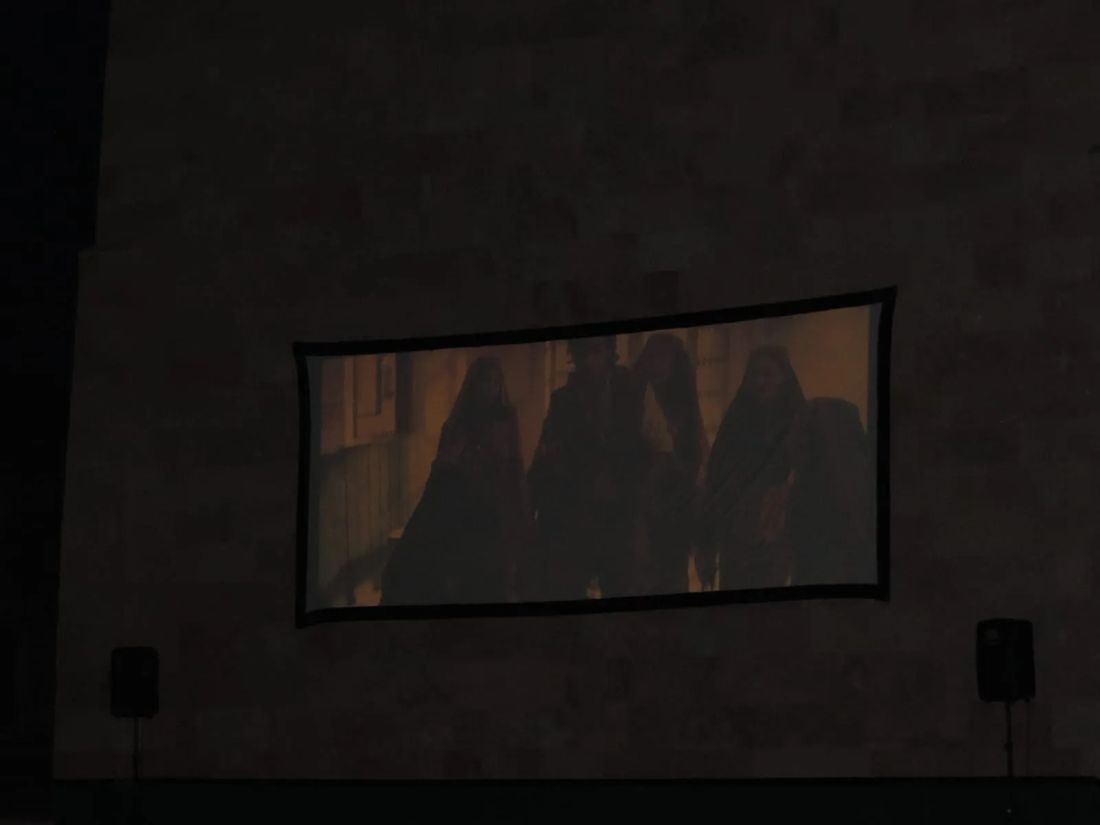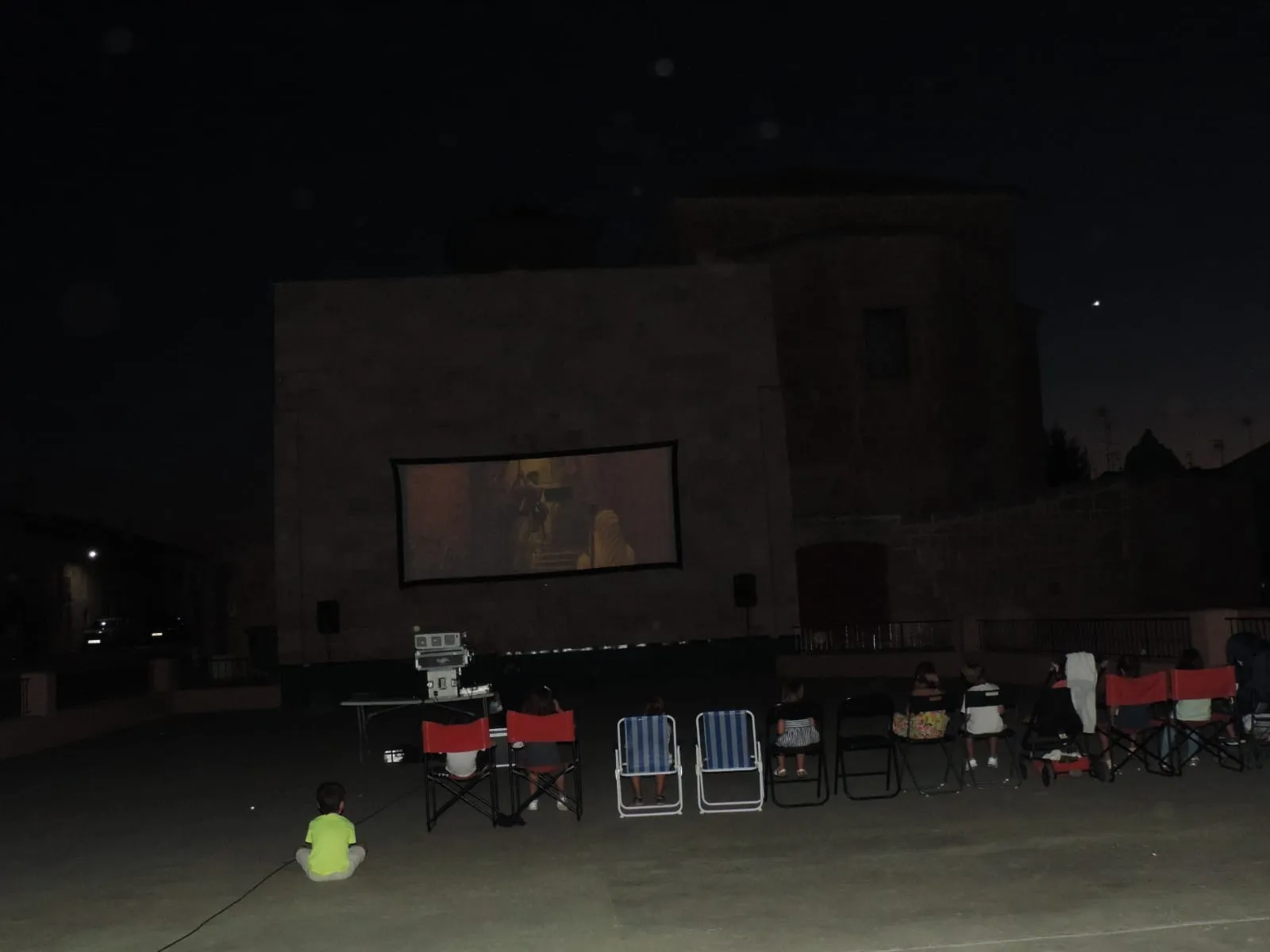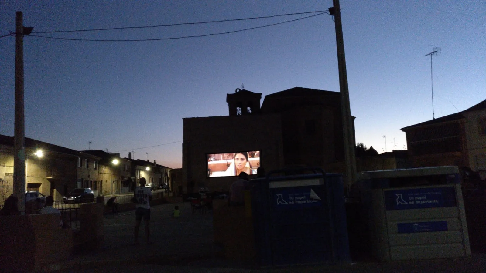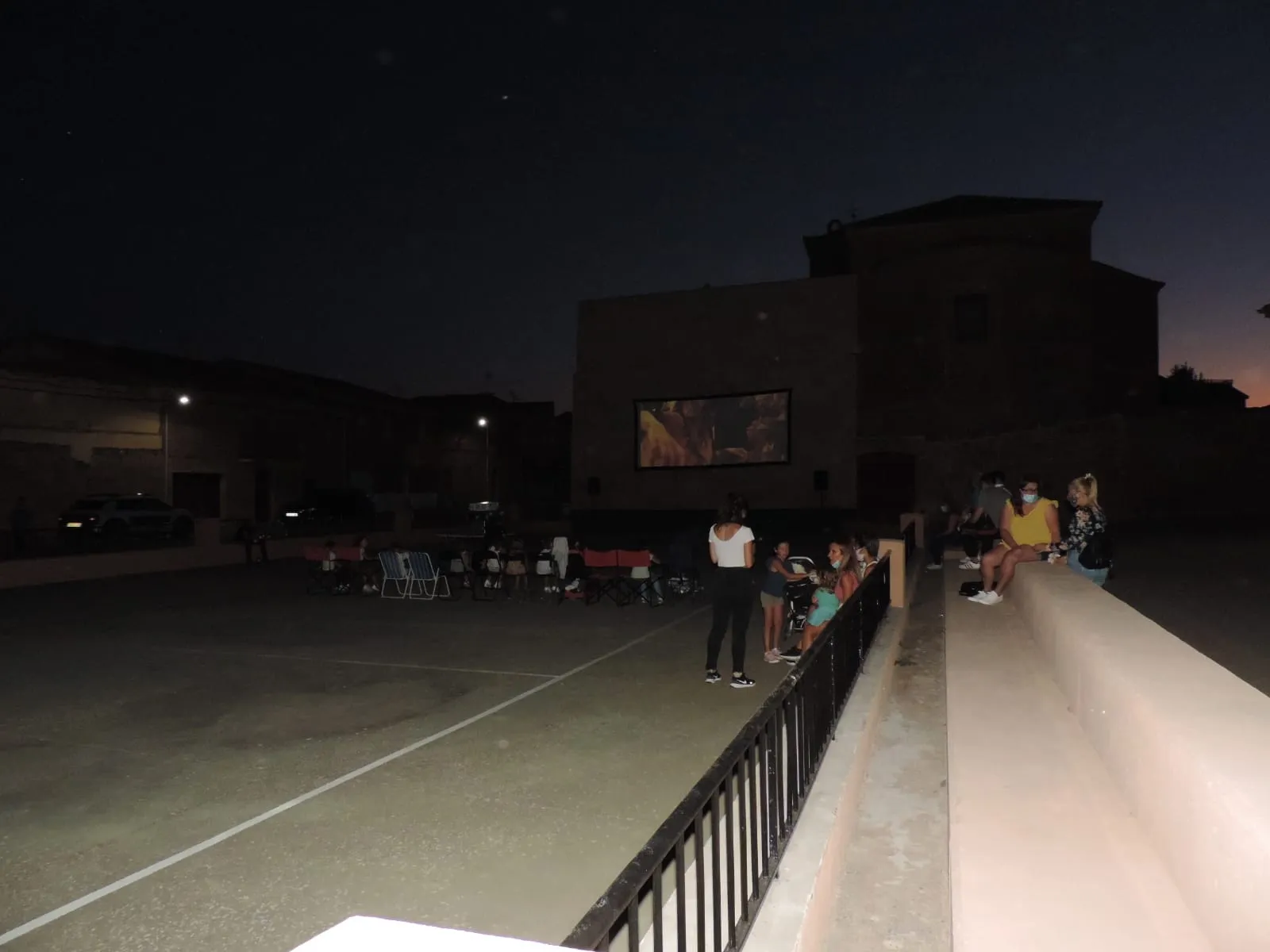 Anoche una improvisada pantalla en el frontón de la localidad permitió a los asistentes disfrutar de Aladdín