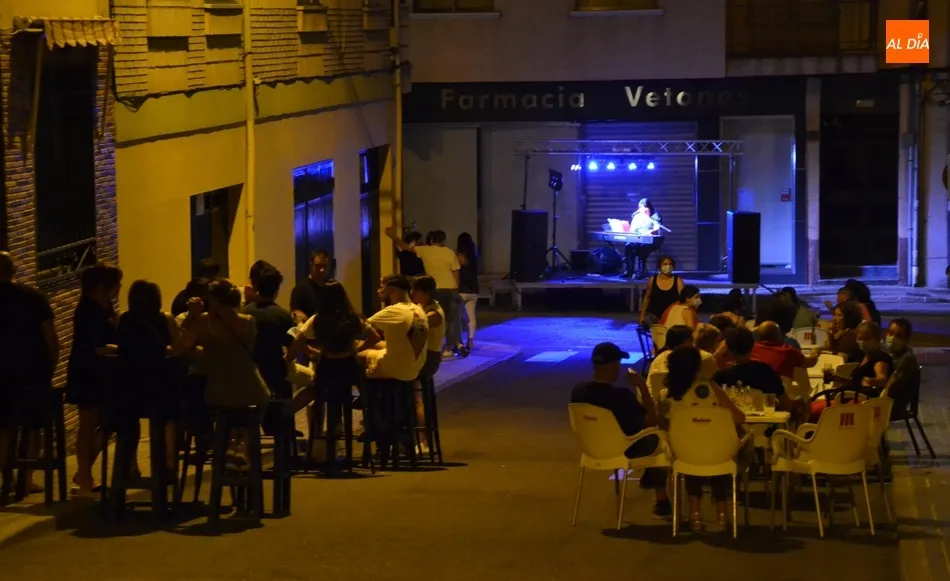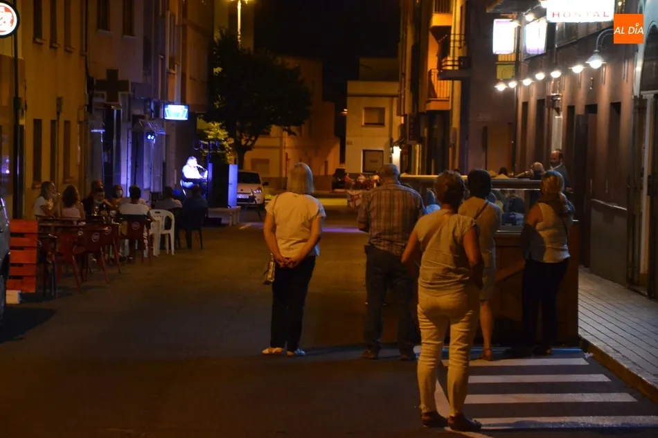 El ciclo veraniego de amenización de terrazas promovido por la Concejalía de Festejos del Ayuntamiento de Ciudad Rodrigo prosiguió en la noche del miércoles en el barrio de Santa Ana, y más concretamente en la confluencia de las calles Wetones y San Marcial, donde se montó el escenario itinerante de este ciclo.