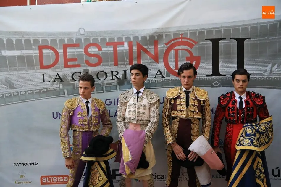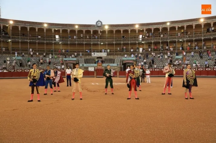 A la arena de la conocida plaza charra han saltado los alumnos Rubén Nuñez, de México; el salmantino Fabio Jiménez; Eloy Sánchez, de Valencia; y Sergio Sánchez, de Badajoz. Se han enfrentado a reses de Ramón Rodríguez Espioja, La Campana, Hermanos Asensio y López Chaves respectivamente.