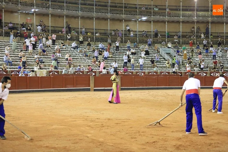 El programa Destino La Glorieta se ha iniciado esta tarde con la primera clase práctica de la Escuela de Tauromaquia de Salamanca en la que han participado un total de cuatro alumnos. En torno a 1.200 aficionados se han acercado a presenciar el festejo, que se ha celebrado cumpliendo todas las medidas de seguridad. Además, ha supuesto el regreso de la actividad taurina al coso tras el estado de alarma.