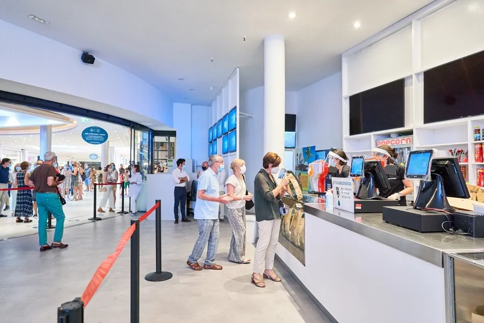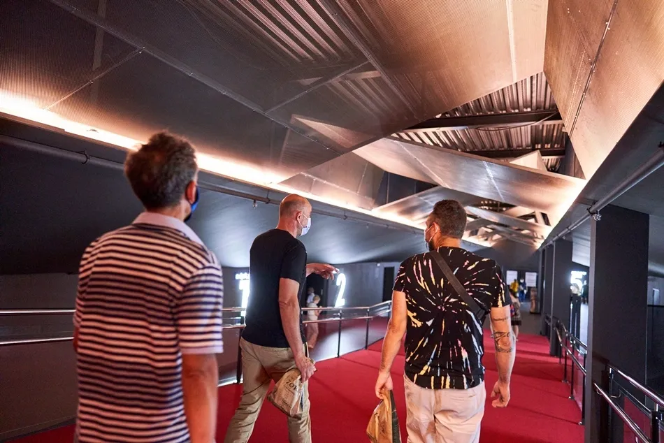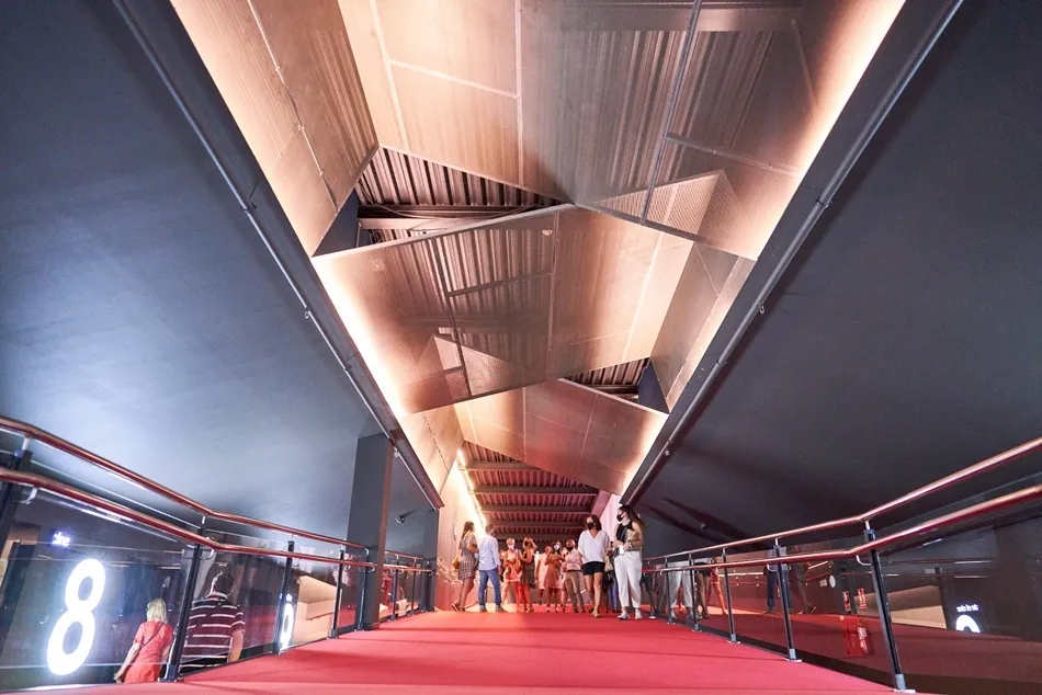 La segunda prioridad de este innovador proyecto fue redistribuir el espacio para facilitar el tráfico fluido de espectadores. Al incorporar nuevas entradas y salidas laterales, se evitan las aglomeraciones: el público que acaba de ver una película nunca coincide con el que espera a la siguiente. Esta medida -ya prevista antes de la pandemia- garantiza la distancia de seguridad, primordial en la lucha contra el COVID-19. La renovación continúa en el interior de las salas, todas ellas con nuevo aislamiento acústico e iluminación.