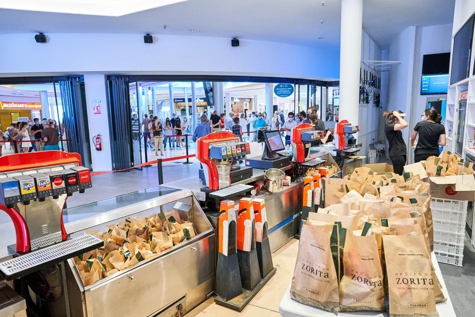 El complejo de nueve salas presenta ahora un único espacio diáfano y continuado que elimina las barreras arquitectónicas y optimiza la circulación del público. El nuevo vestíbulo, de gran tamaño, se integra en la primera planta del Centro Comercial y centraliza todos los servicios, desde la taquilla a la barra de palomitas y la de chucherías. Una espectacular pantalla de contenidos digitales invita a acercarse a un espacio minimalista en el que prima la funcionalidad. Una rampa que evoca la alfombra roja del cine conduce a los espectadores desde la luz y el ajetreo a un espacio más íntimo, el de la sala, el de la experiencia cinematográfica personal y al mismo tiempo compartida.