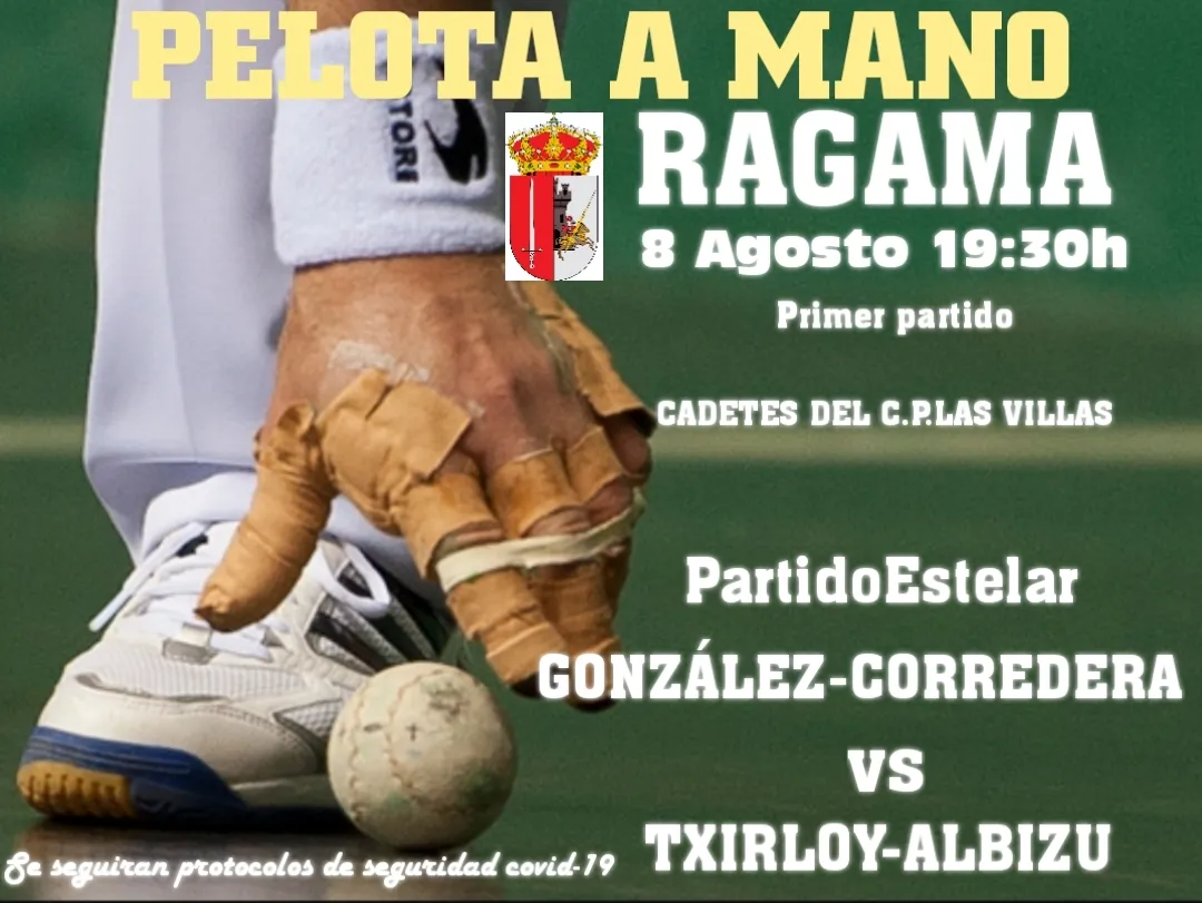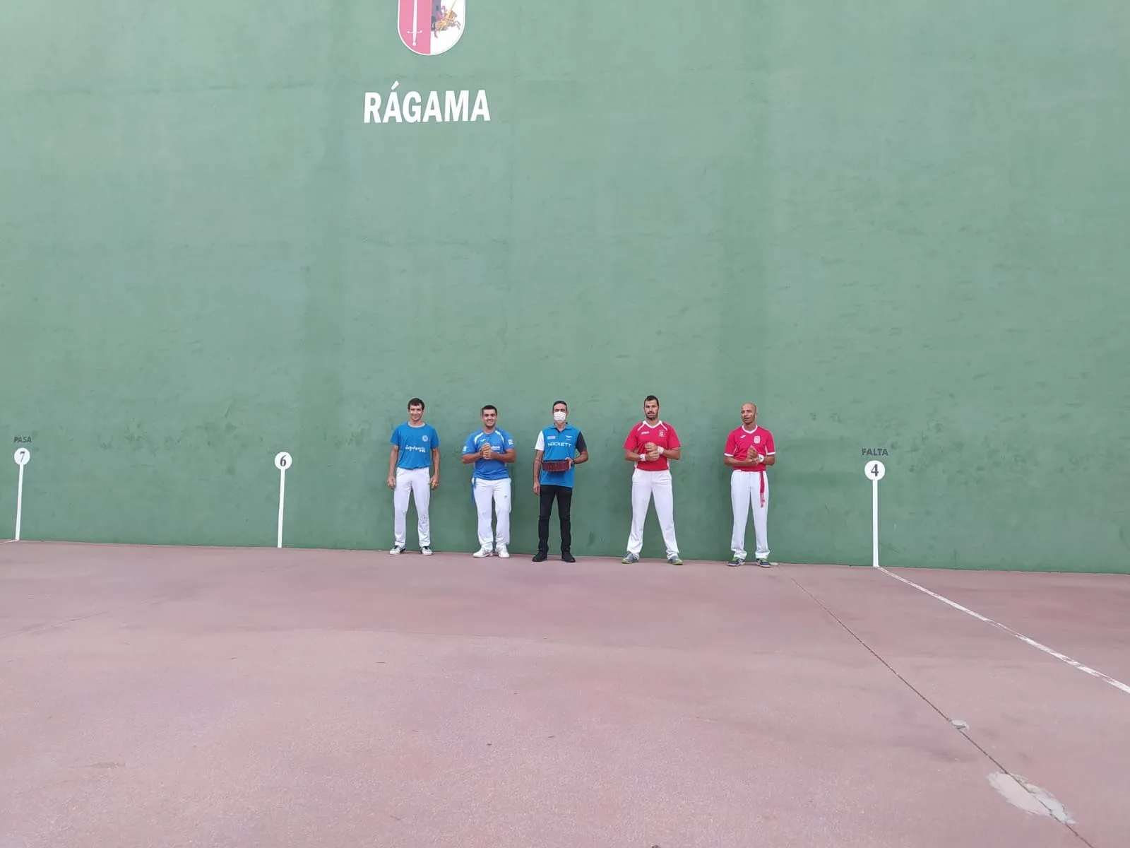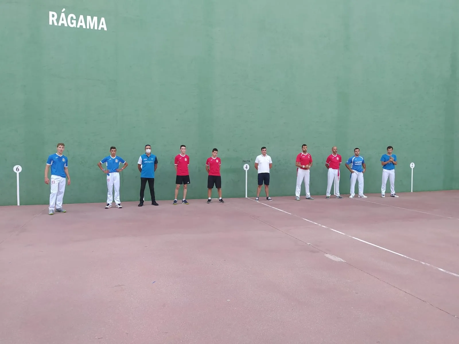 El frontón de Rágama acogió ayer el primer partido de pelota mano post pandemia de cadetes del Club de Pelota Las Villas. Fue un ?un partido muy duro?, en palabras de su presidente, Raúl Corredera. En el segundo partido los pelotaris guipuzcoanos Txirloy y Albizu ganaron a los jugadores del Club de Pelota Las Villas González y Corredera, por 22-21.