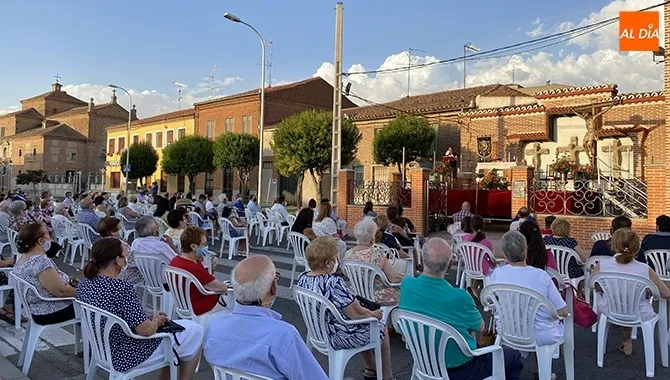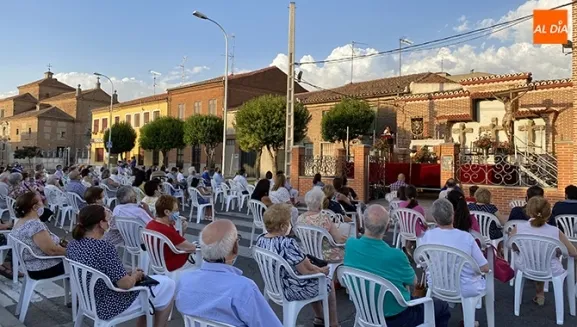 Un gran patio de butacas, situado en el exterior de la Ermita, era el principal escenario de esta celebración, que venía protagonizada por una solemne eucaristía, ofrecida a las puertas del Templo, que era seguida por numerosos fieles, quienes se dispusieron en el entorno siguiendo el protocolo especial de seguridad.
