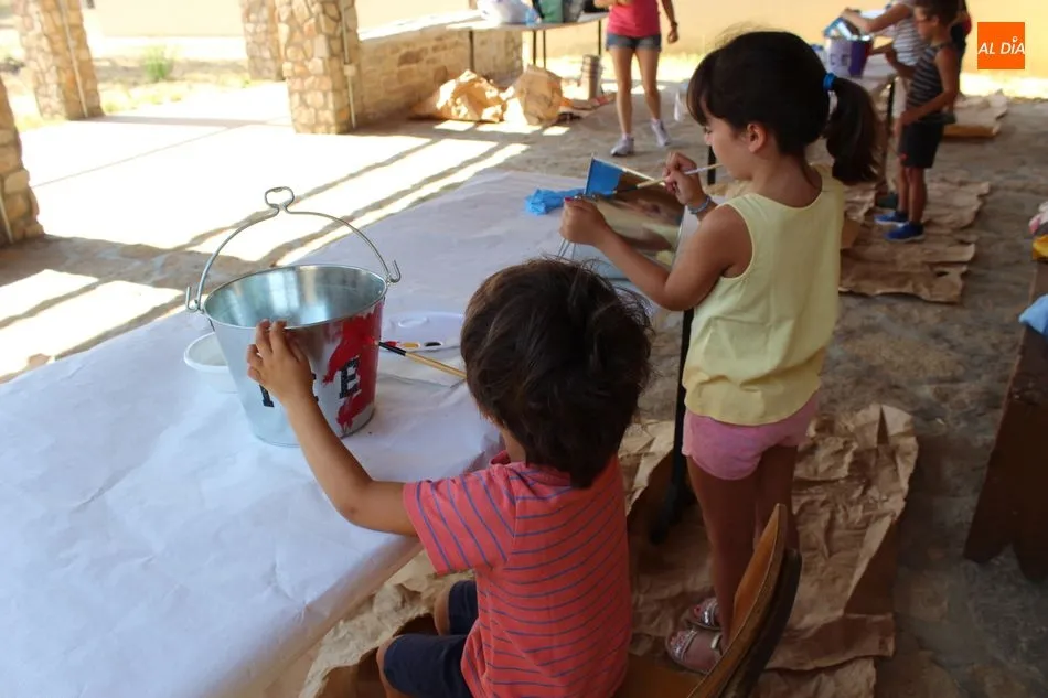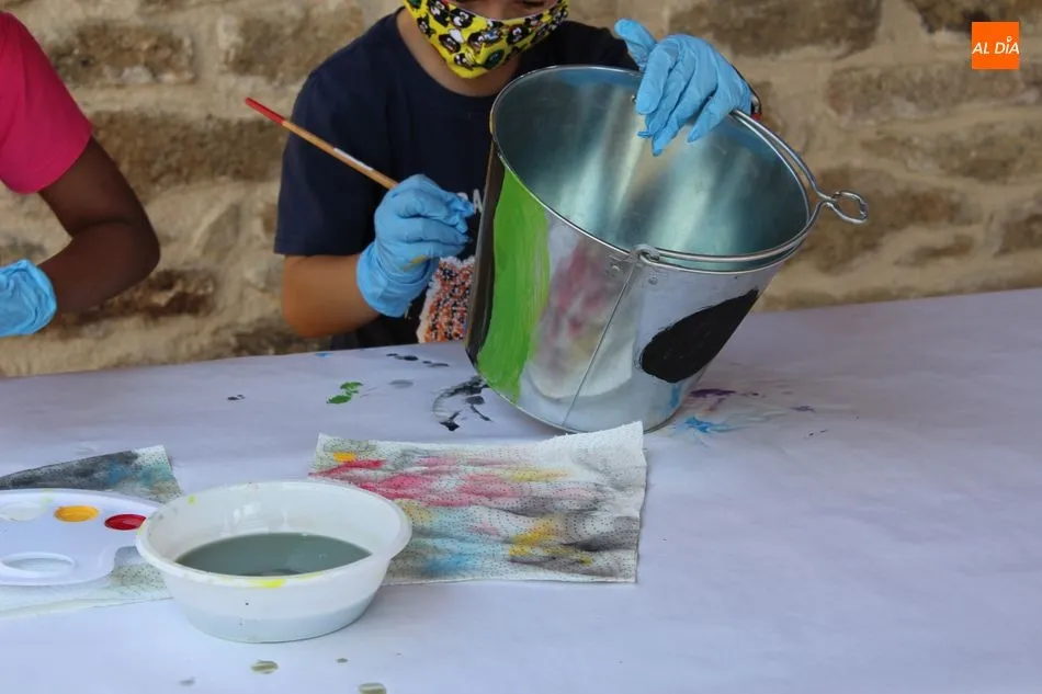 En este taller los niños participantes pintaron herradas de hierro galvanizado para convertirlas en bonitas papeleras que, posteriormente, fueron colocadas en el parque infantil y en el parque de aparatos biosaludables para hacer ejercicio. Además, otra de las actividades consistió en la realización de juegos sobre el reciclado y el medio ambiente.