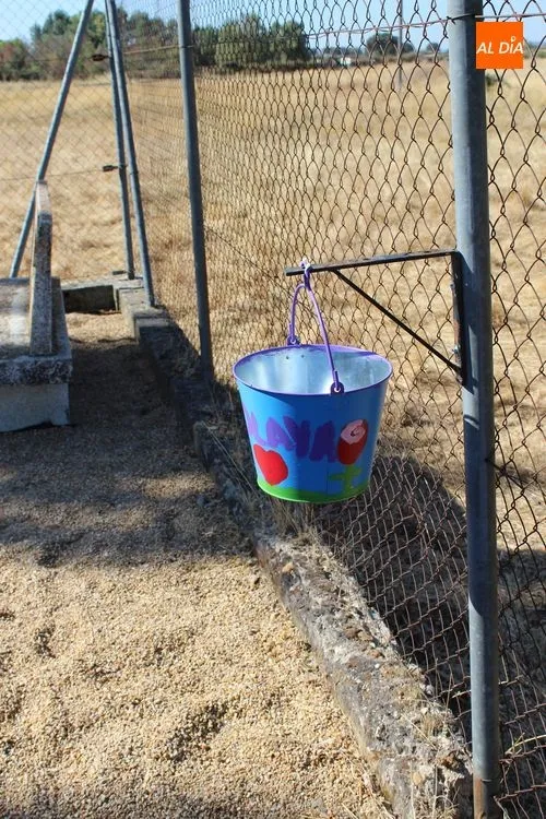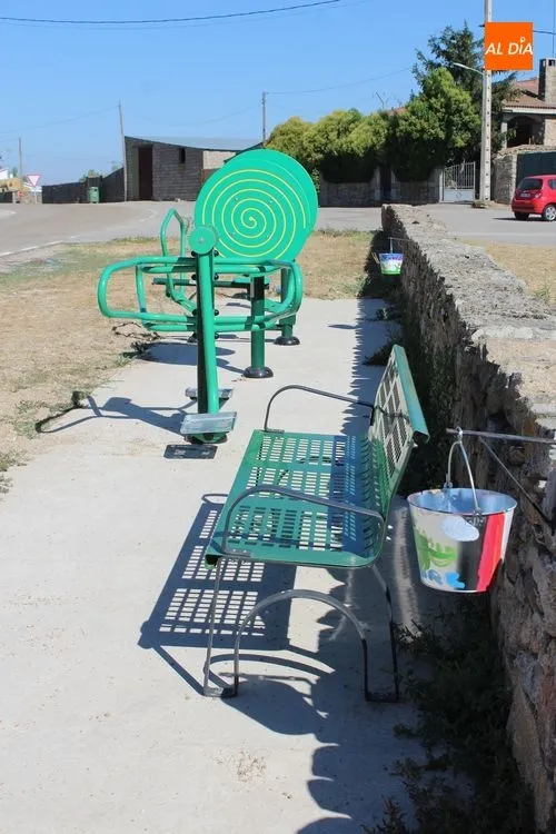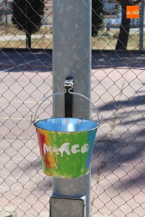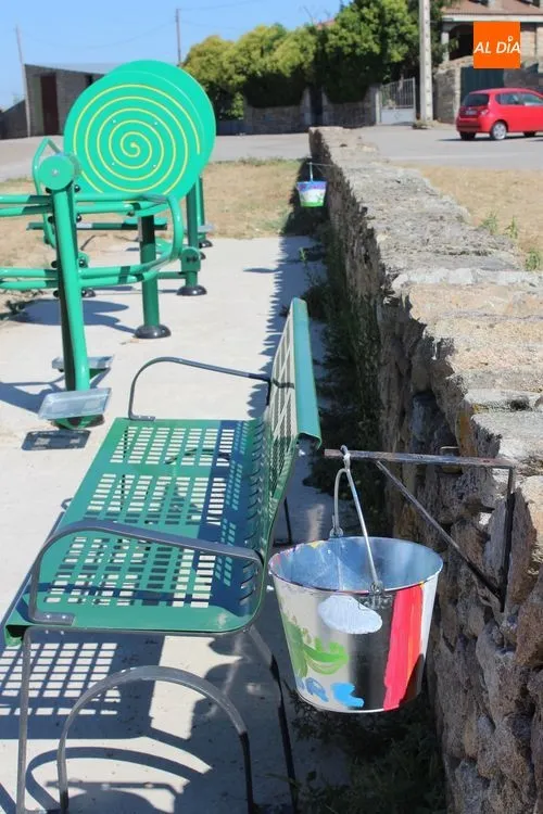 Convirtieron herradas de hierro galvanizado en bonitas papeleras que fueron después colocadas en el parque infantil y en el parque de aparatos biosaludables