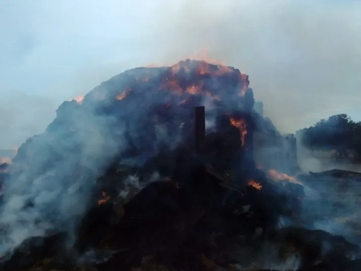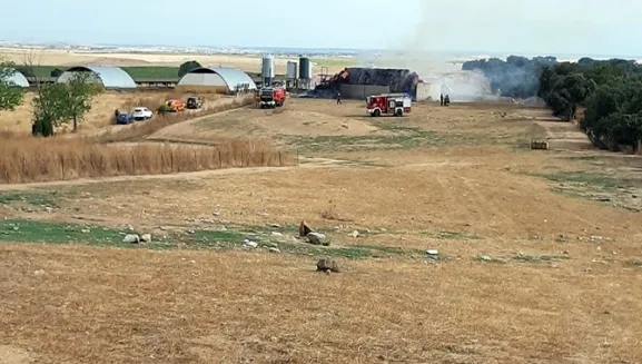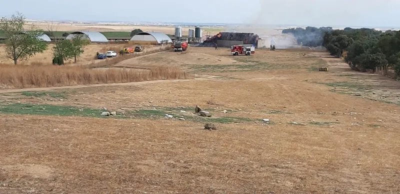 Varias dotaciones de bomberos participan en la extinción de un incendio declarado en la tarde de este martes en una finca agrícola situada en el termino de Valdelosa. El fuego afectaba a una espacio destinado al almacenaje de paja dentro de la finca ?Los Jarales?.