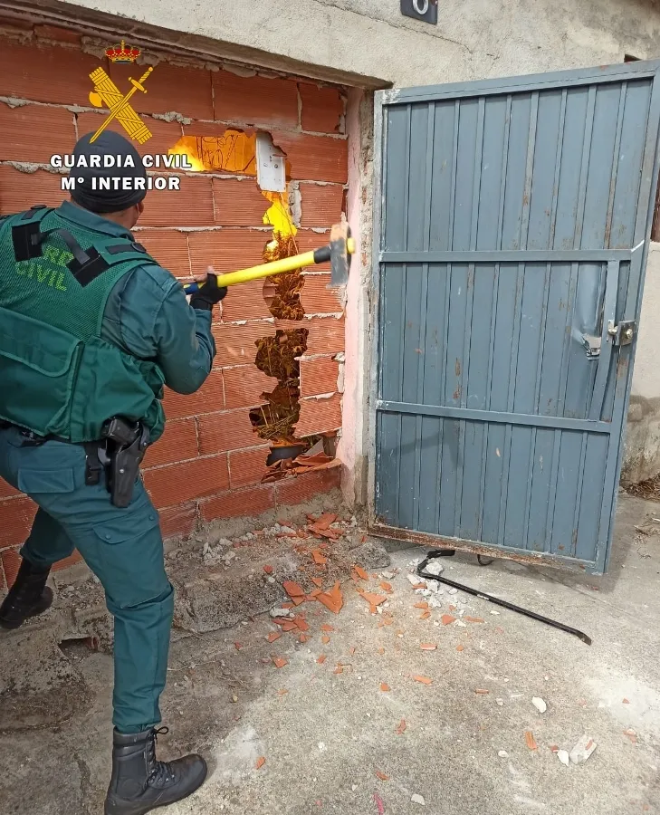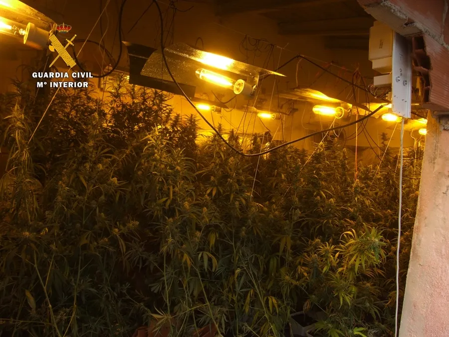 Tras el acceso a la vivienda se observa que no existe ningún acceso directo a la nave anexa, éste se encontraba tapiado, por lo que fue necesario derribar la pared de ladrillos. Tras ello, quedó al descubierto ?una plantación indoor totalmente equipada con lámparas de calor, equipos de aire acondicionado y todo lo necesario para su cuidado y mantenimiento, observando una puerta al fondo que es el único acceso a la nave, la cual desemboca en el pasillo al que dan las ventanas de la vivienda registrada, correspondiendo con la ventana del cuarto de baño?, explican los agentes.