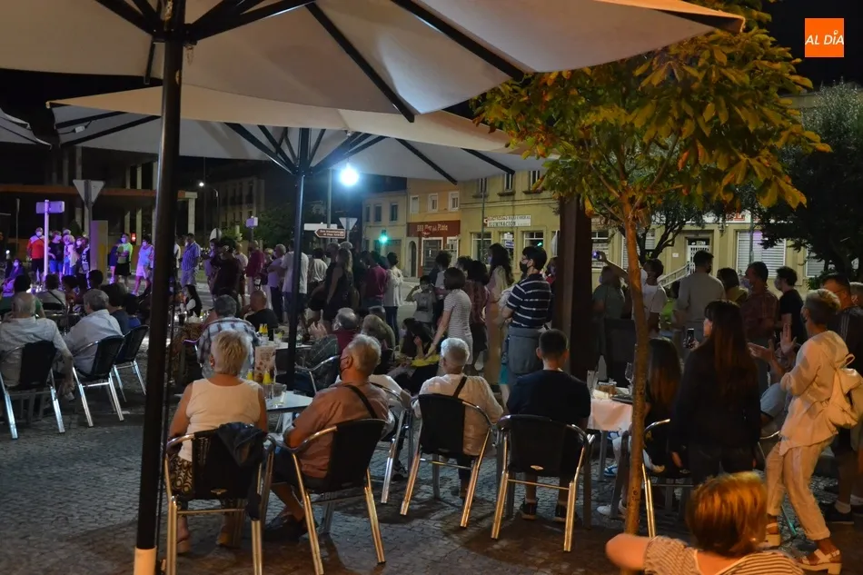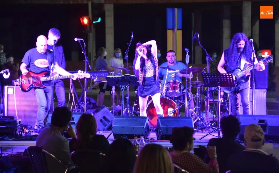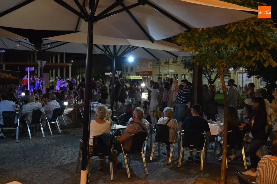 En este caso, solo había una terraza en las inmediaciones del escenario, pero entorno a la misma se congregó numerosísimo público para disfrutar de las versiones de grandes temas de rock a cargo de esta formación mirobrigense. Como se puede ver en las imágenes, con la terraza totalmente llena, el público que no tenía sitio en la misma ocupó toda la acera.