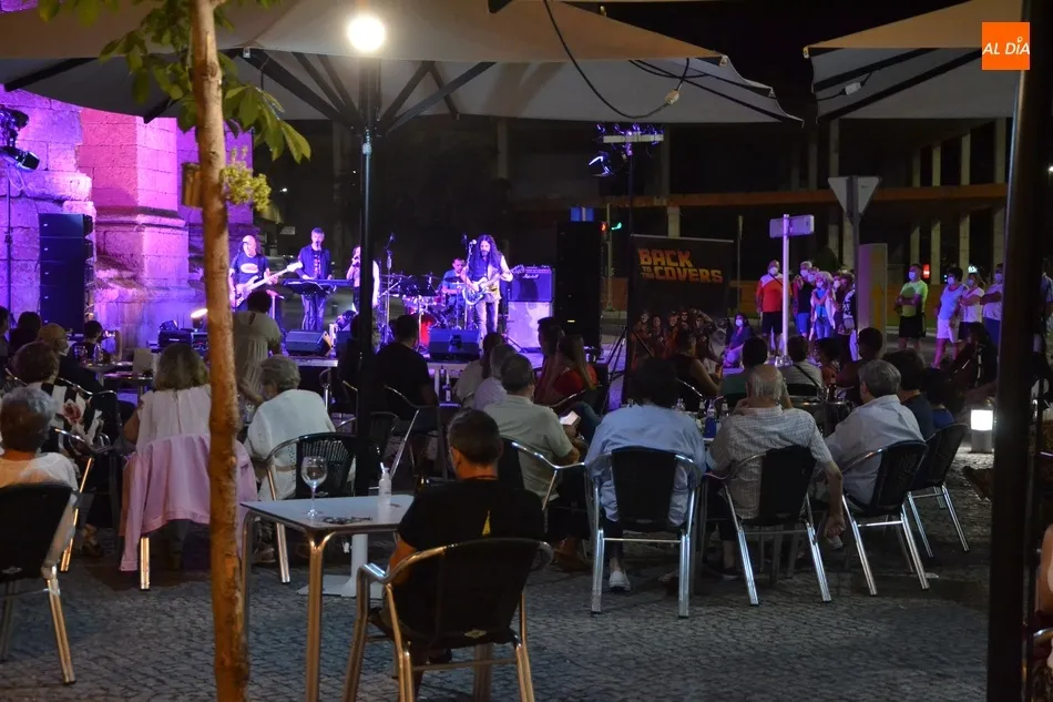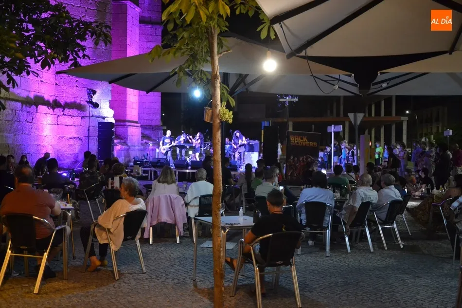 En concreto, en la fresca noche del martes (hubo una notable bajada de temperatura respecto a veladas precedentes) se pudo disfrutar a los pies del histórico Convento de San Francisco del concierto de Back to the Covers dentro del ciclo de amenización de terrazas de la Concejalía de Festejos del Ayuntamiento de Ciudad Rodrigo.