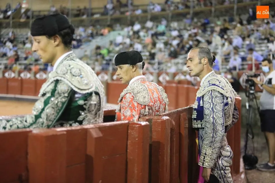El peruano Julio Alguiar abrió la faena, aunque se marchó sin trofeo; mejor suerte tuvo el salmantino Jesús de la Calzada que cortó una oreja; oreja también para el madrileño Juan Herrero; y dos orejas para el de Ronda, pero sin puerta grande por motivos de seguridad anti-Covid19.