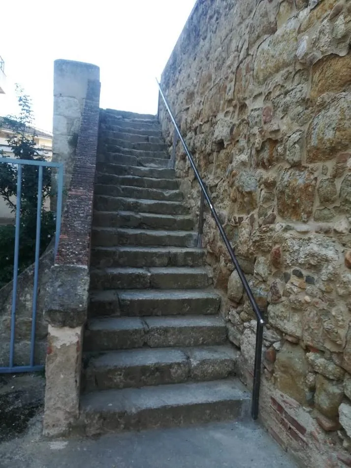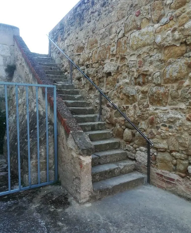 Las ?peligrosas? escaleras ?los escalones están muy deteriorados- de acceso a la muralla desde la Puerta de San Vicente/Santa Cruz/Sancti-Spíritus de Ciudad Rodrigo han pasado a ser bastante más seguras, con la colocación de un pasamanos en el lateral correspondiente al lienzo de la muralla, como se puede apreciar en las imágenes.