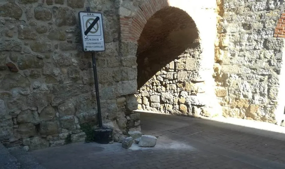 Como intervención adicional, operarios del Ayuntamiento de Ciudad Rodrigo también estuvieron reparando en la mañana del viernes unos desperfectos en el ?pilar? izquierdo del lateral de la bóveda de la citada Puerta que da al interior del recinto amurallado. En concreto, estuvieron recolocando varias piedras que se habían desprendido.