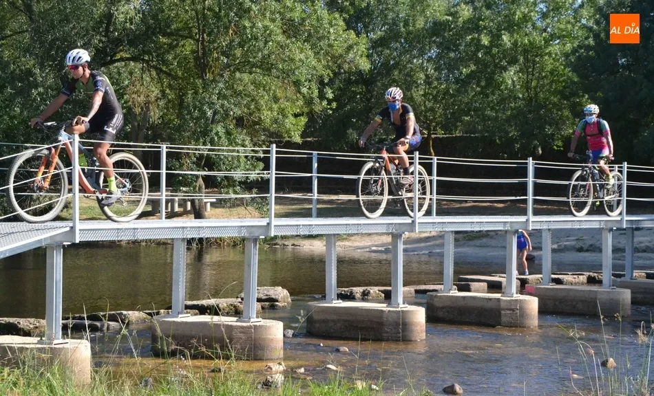 La meta del reto estuvo en la isla de El Picón, donde hicieron su entrada los atletas a eso de las 18.15 horas cruzando el río Águeda por la pasarela situada en los tradicionales pontones. Como cierre del evento tras una maratoniana jornada, el grupo de atletas y ciclistas se hizo una foto de familia antes de, por ejemplo, irse a tomar algo o pegarse un chapuzón en las aguas del Águeda para aliviar el calor, que por fortuna no fue tan extremo como en semanas anteriores.