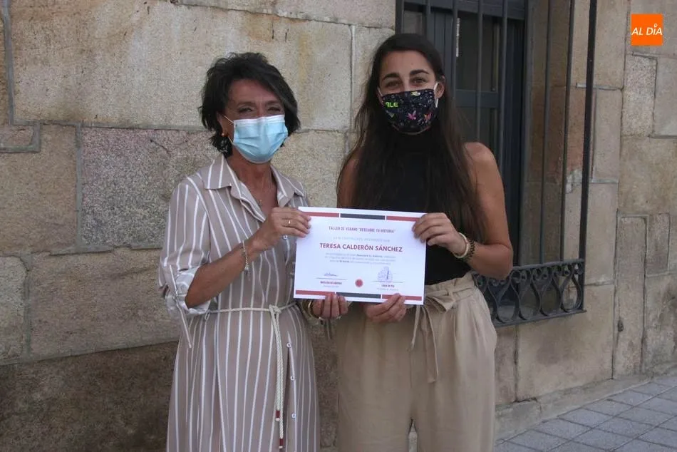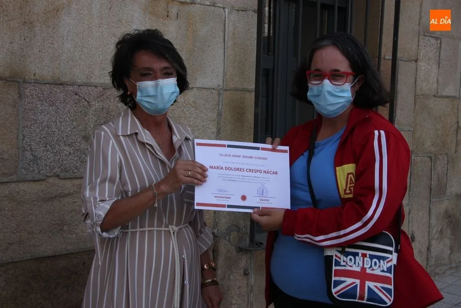 La alcaldesa de Vitigudino, Luisa de Paz, procedía este martes a la entrega de los diplomas a varios de los participantes en el taller ?Descubre tu historia?, iniciativa que ha tenido lugar en esta localidad entre los días 6 y 8 de agosto, y que ha sido impartido por la historiadora Nuria Corral Sánchez.
