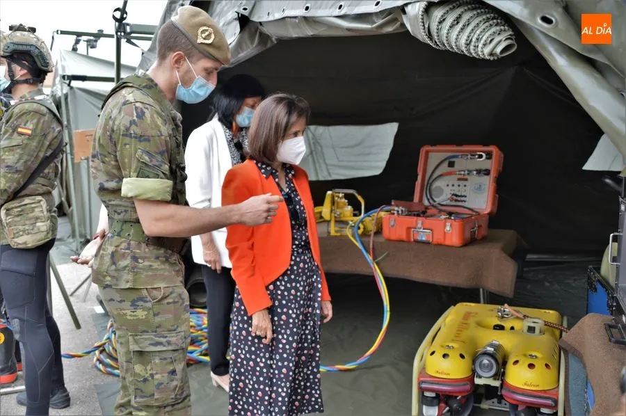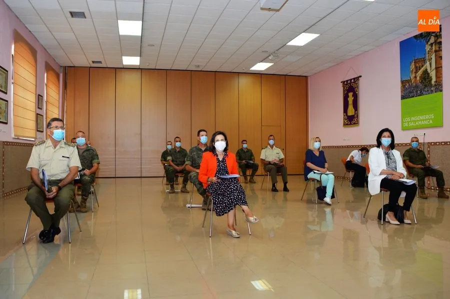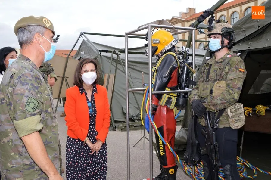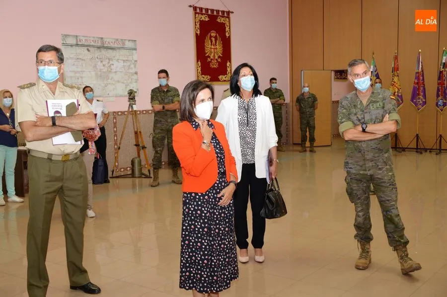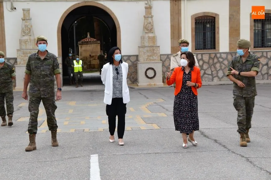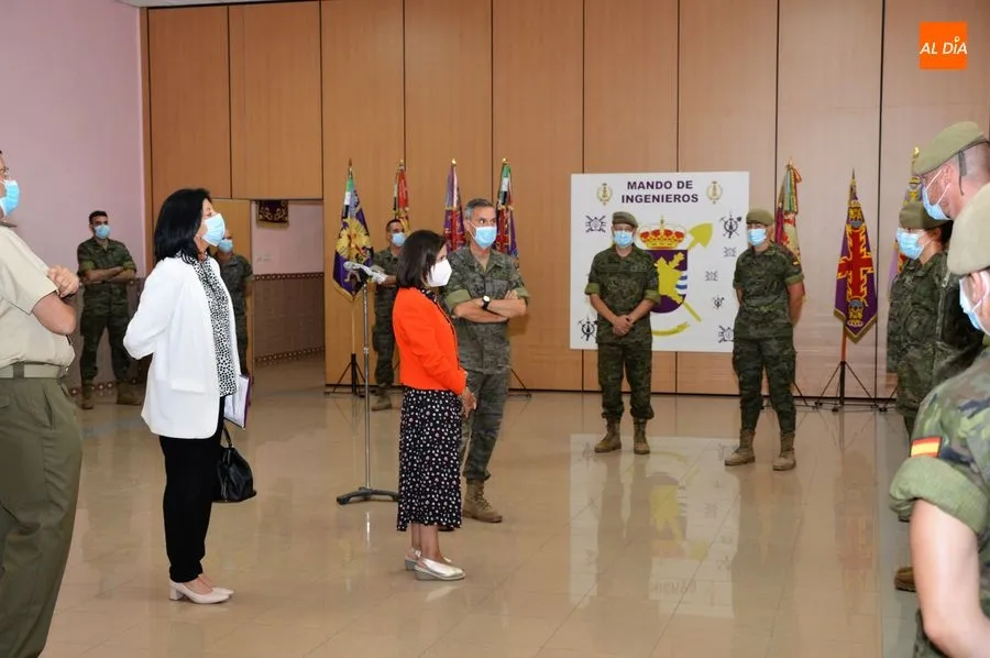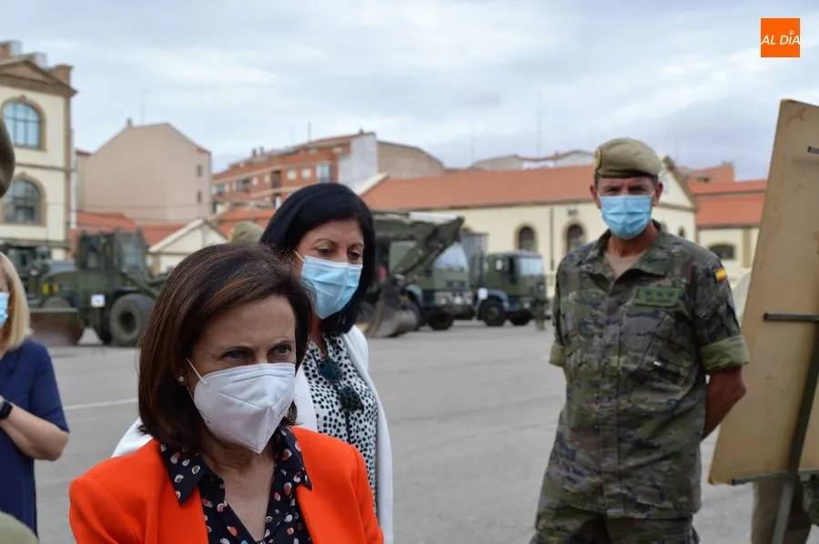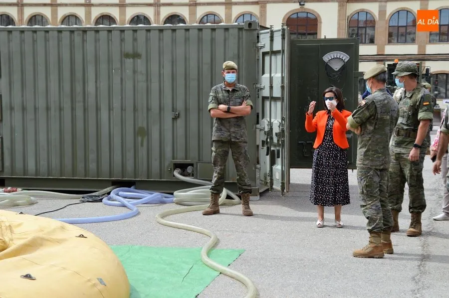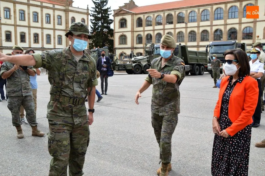 La ministra de Defensa, Margarita Robles, ha visitado el cuartel General Arroquia, en Salamanca, para dar las gracias al regimiento de Ingenieros número 11 por el trabajo que ha hecho durante la pandemia. ?El Ejército está siempre preparado, si fuera necesario en 24 horas estaría preparado?, explicaba.