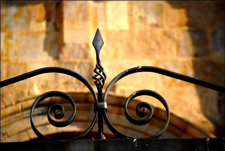 Los motivos vegetales eran en el románico un hermoso símbolo de Cristo y de su iglesia, hojas de acanto de reminiscencias clásicas venidas de los griegos a través de Roma. Hojas y flores para evocar el paraíso que se rodean del círculo visigótico que representa la eternidad, lo que nunca se acaba. La pared nos escribe los símbolos que utilizaron los canteros en la Catedral Vieja, hojas de eternidad, círculos inacabables. La belleza del delicado bajorrelieve es el detalle que el fotógrafo descubre, deseoso de lecturas, ojo avizor de los más hermosos adornos de un templo alzado sobre la piedra desde el que nos miran, malencarados, grotescos, divertidos en su mueca de siglos, los rostros de las cornisas. El cantero hace bromas de cincel y el fotógrafo acaricia la luz sobre los sillares dorados de la piedra de Villamayor. Esta iglesia a la que se llega por una escalera tan antigua como su alzada, simple belleza, es una joya inesperada. Cerrada en su tranquila eternidad, acallados sus rostros de guignol, despierto su jardín tallado. Es la perdurable verdad del símbolo, su hermoso legado, y el fotógrafo descubre entonces la cualidad de luz sobre la piedra.