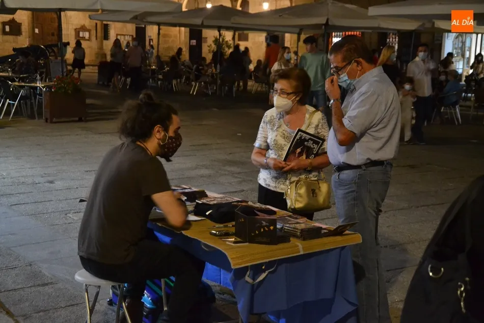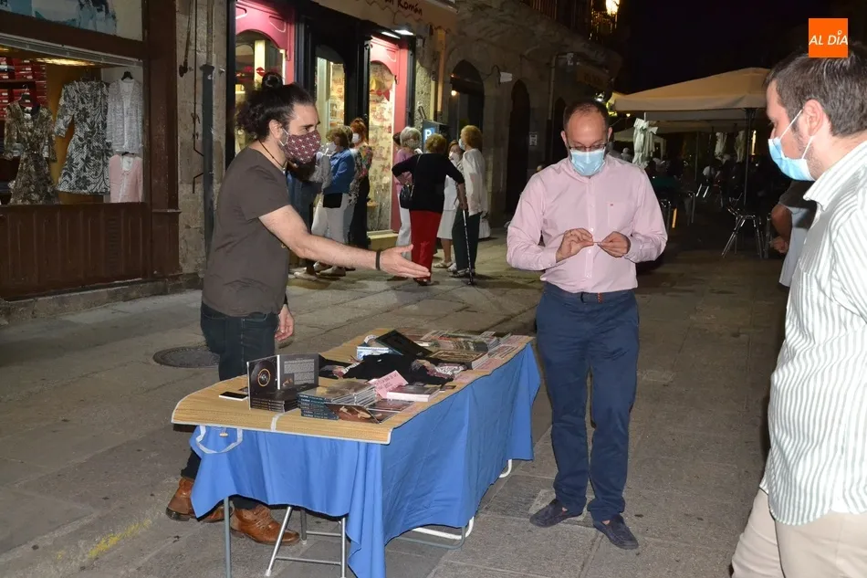 También en la calle Lorenza Iglesias estuvo Rebeca Jerez (en el stand de Nova Express) dedicando ejemplares de Como los hijos de Atticus; mientras que en el Parque de La Glorieta, en el stand de la Imprenta Lletra, estuvo el joven Hugo Sánchez Alegría firmando ejemplares de Las aventuras de Hugo. La relación de creadores de La Noche del Comercio se completó con Sergio Cardoso, quién tuvo a la venta libros, discos y fanzines en la Plaza Mayor.