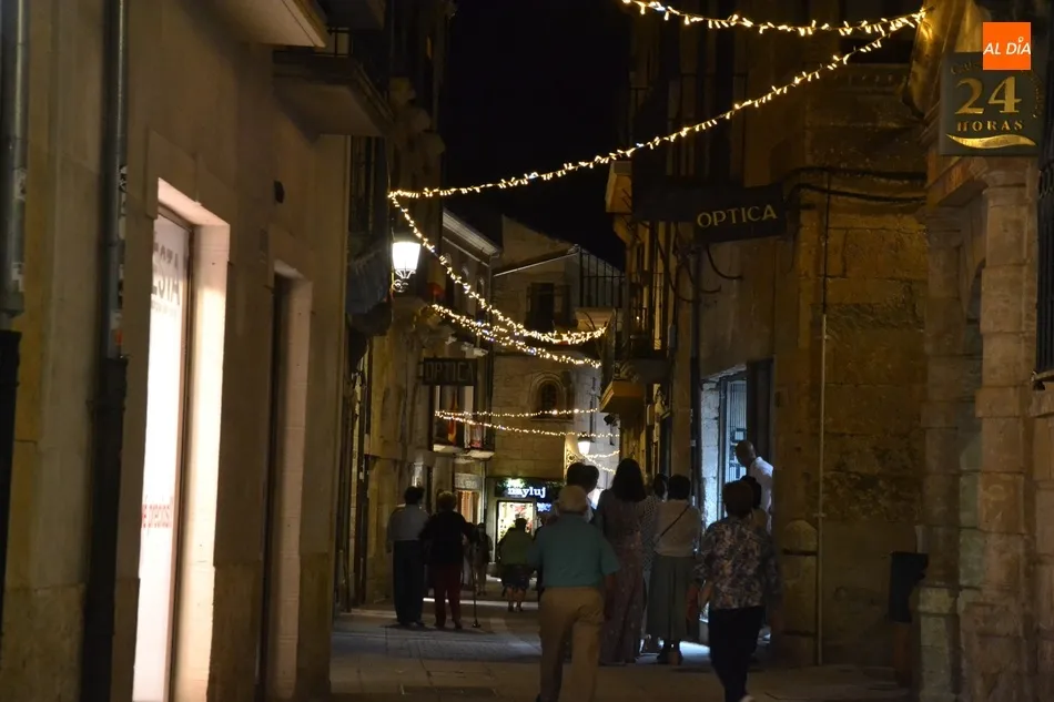 Ciudad Rodrigo vivió en la velada del viernes La Noche del Comercio, el evento promovido por el Ayuntamiento mirobrigense y la Federación de Empresarios y Trabajadores Autónomos de la comarca de Ciudad Rodrigo (Afecir), como ?alternativa? a no haberse podido celebrar este mes de agosto las dos grandes jornadas de exaltación comercial de la ciudad, el Martes Chico y el Martes Mayor.