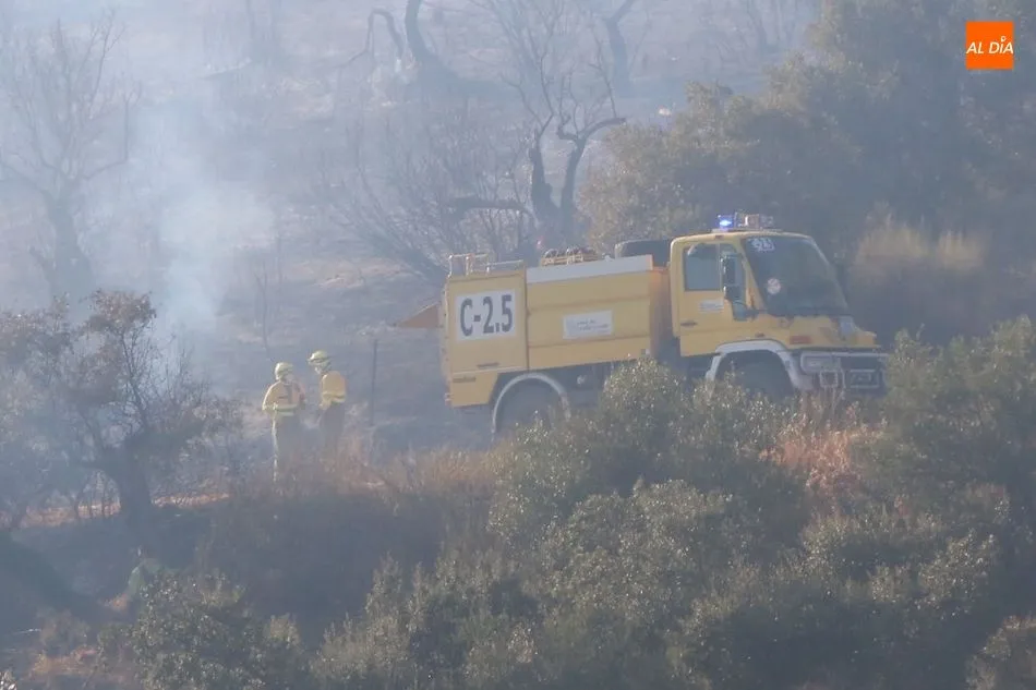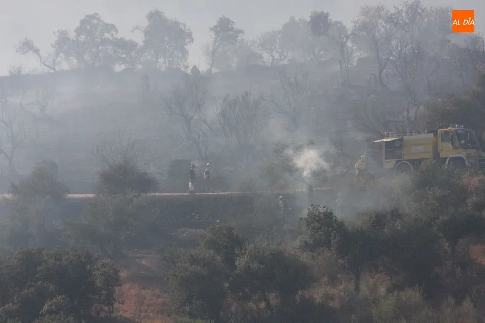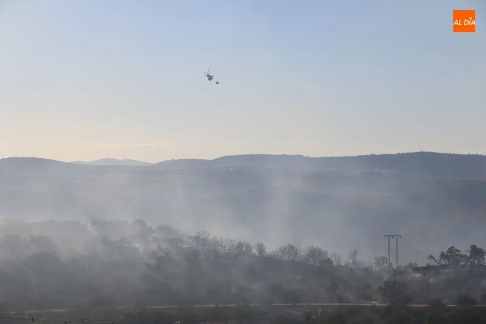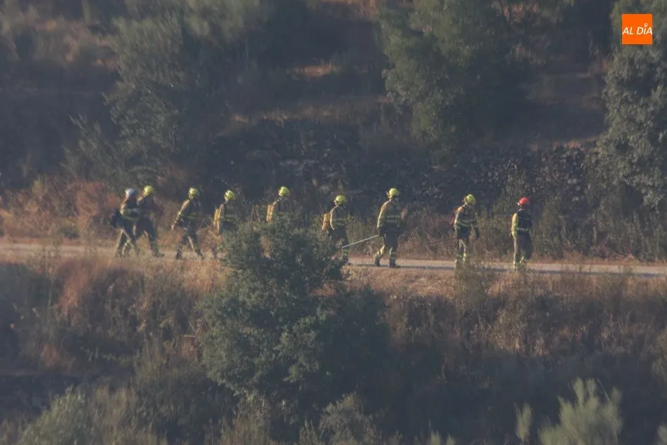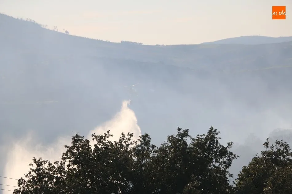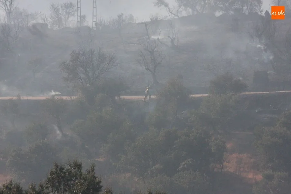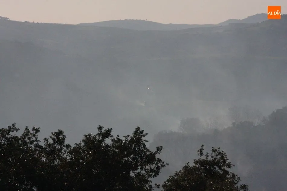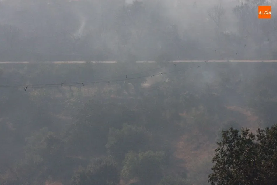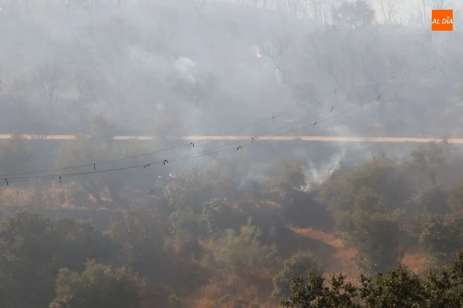 El incendio, que se produjo sobre las 17.00 horas y que ha afectado a la ladera del embalse de Saucelle en el Parque Natural Arribes del Duero, paraje de los Garduños, permanece activo aunque dos horas después de su declaración se encontraba controlado.