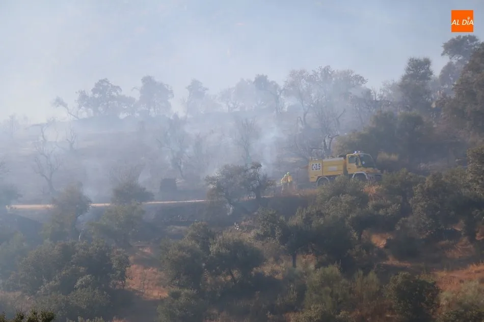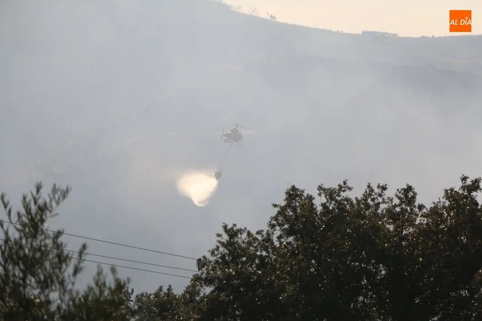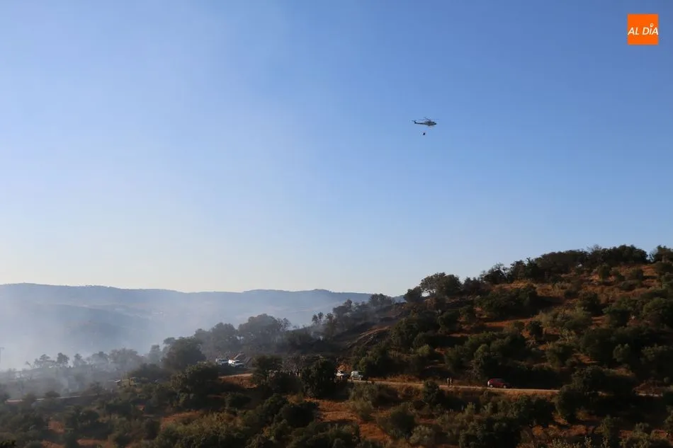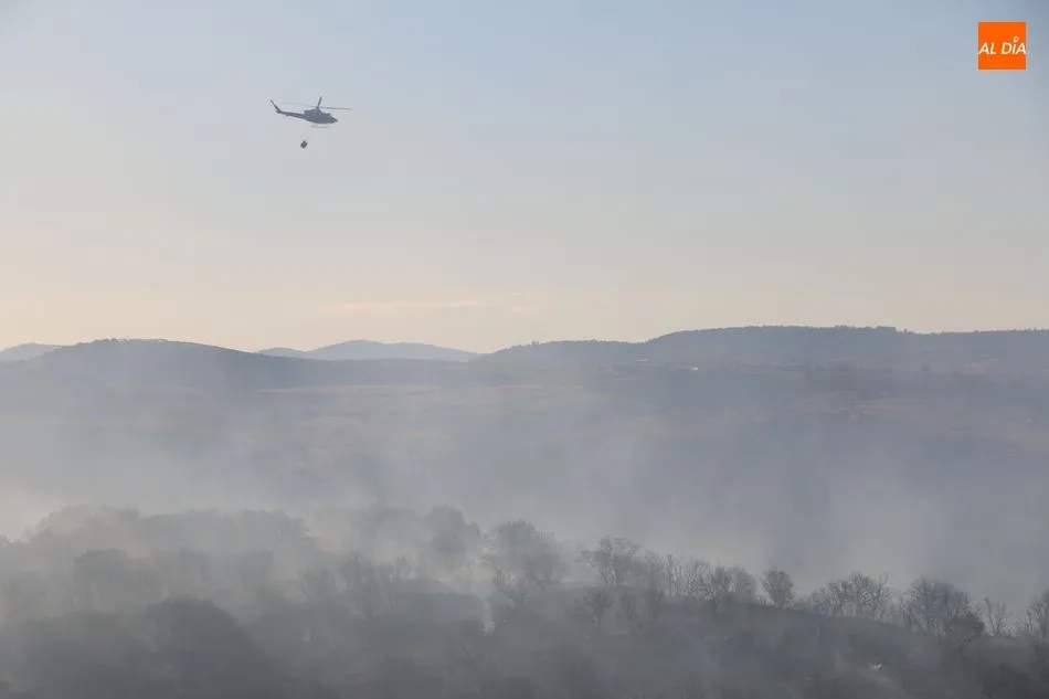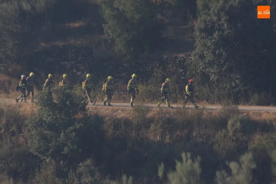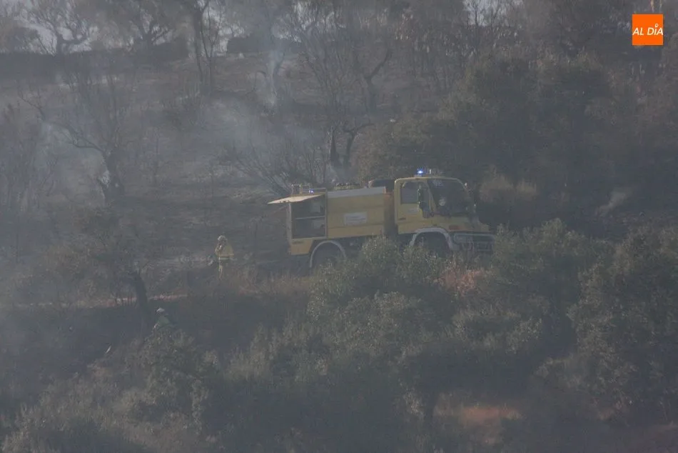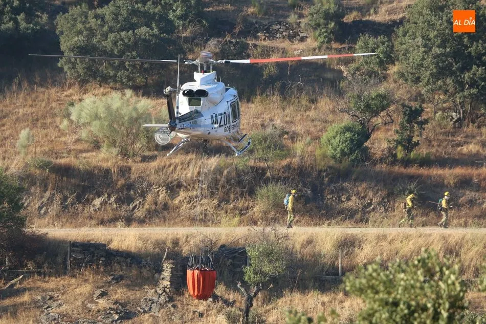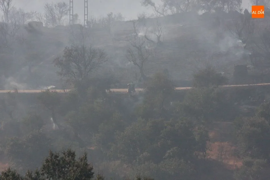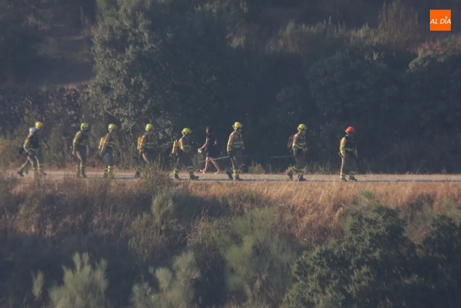 El incendio, que se produjo sobre las 17.00 horas y que ha afectado a la ladera del embalse de Saucelle en el Parque Natural Arribes del Duero, paraje de los Garduños, permanece activo aunque dos horas después de su declaración se encontraba controlado.