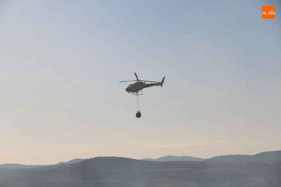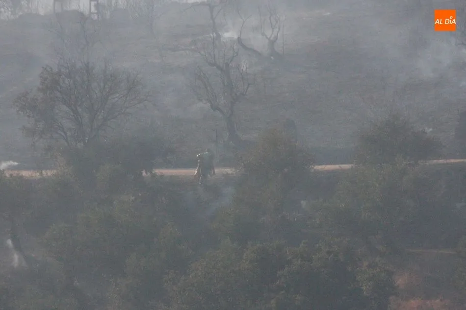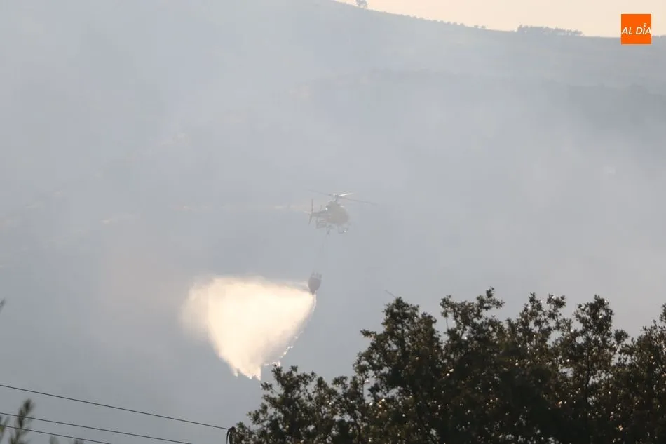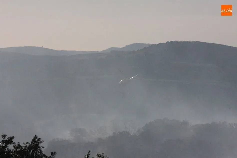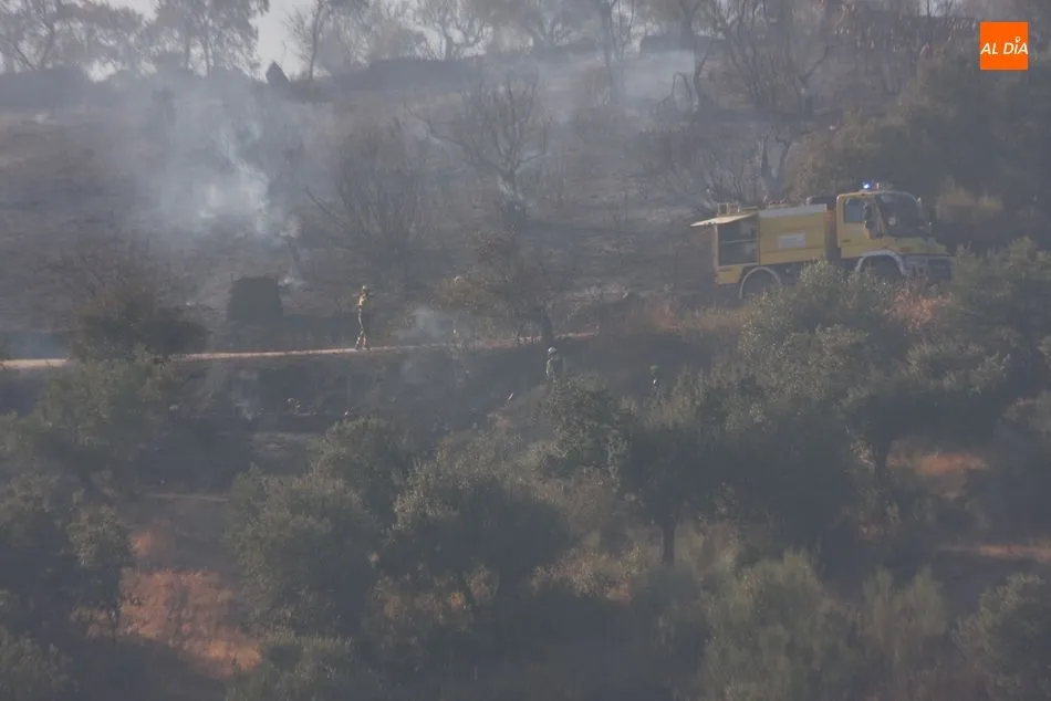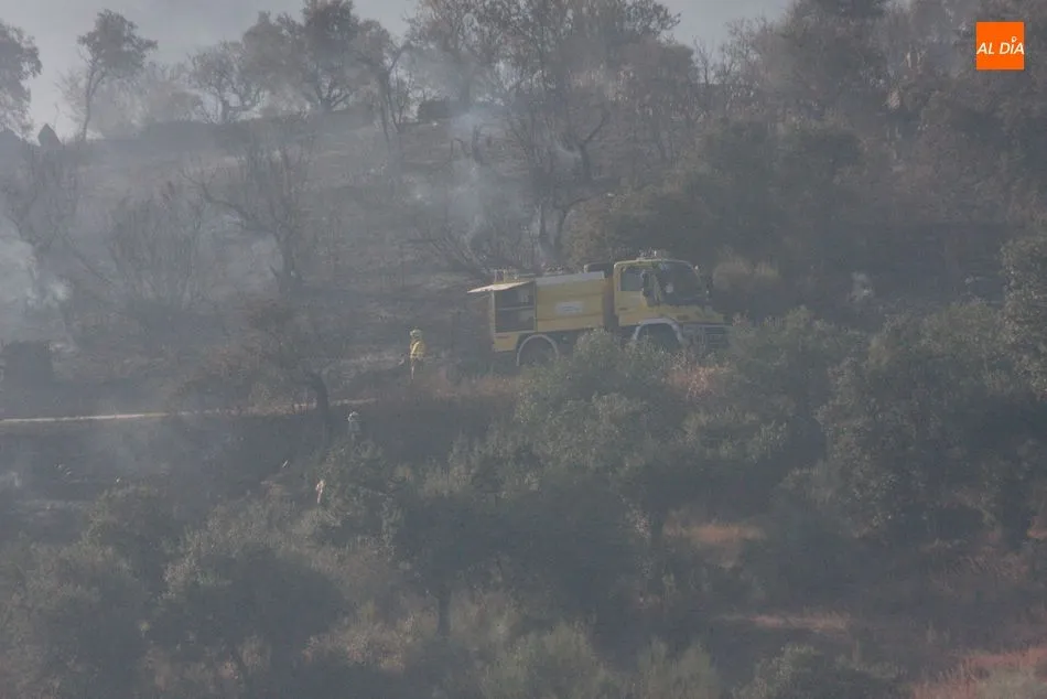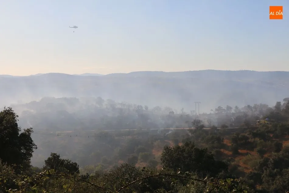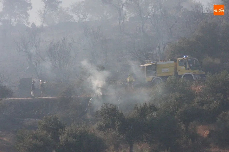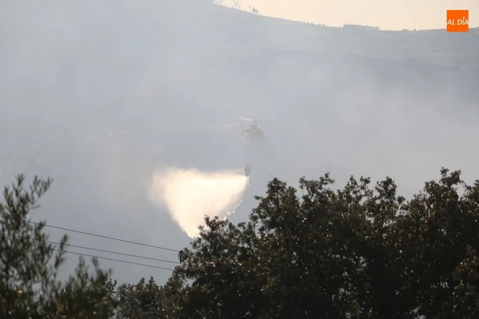 El incendio, que se produjo sobre las 17.00 horas y que ha afectado a la ladera del embalse de Saucelle en el Parque Natural Arribes del Duero, paraje de los Garduños, permanece activo aunque dos horas después de su declaración se encontraba controlado.