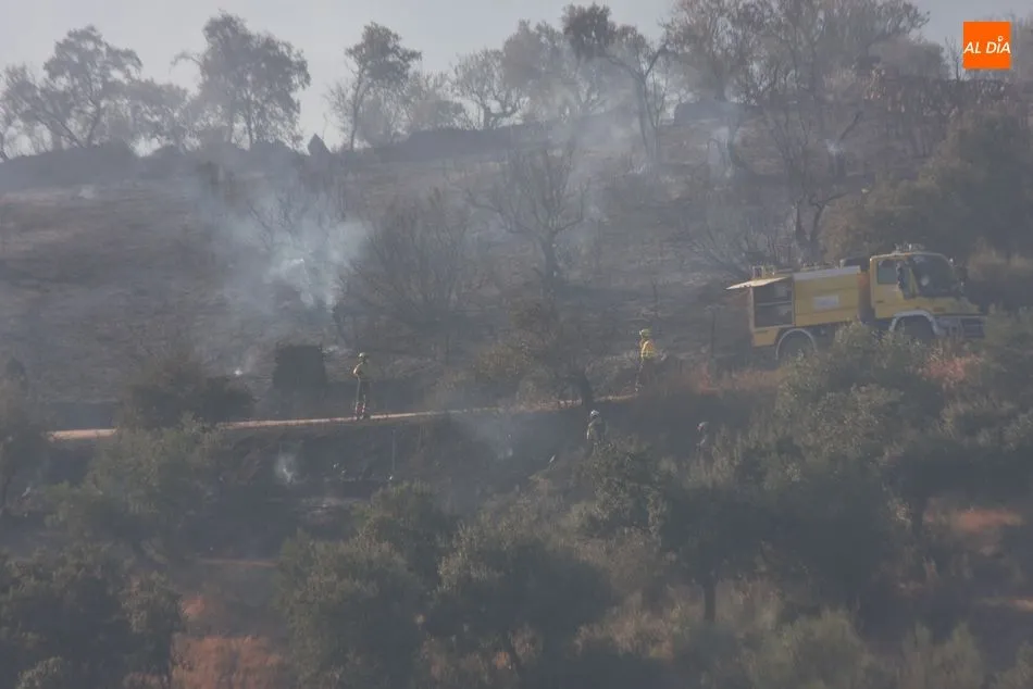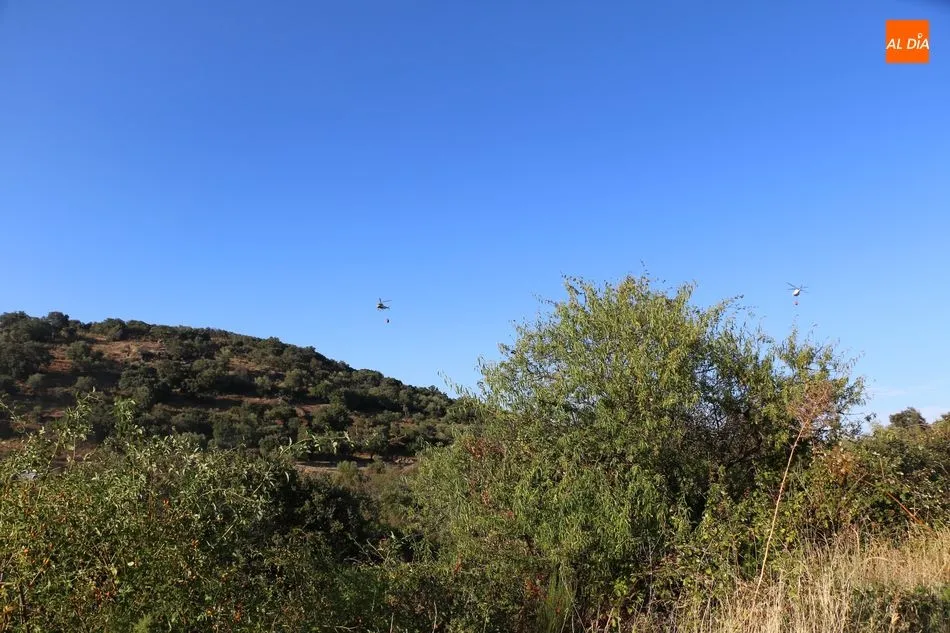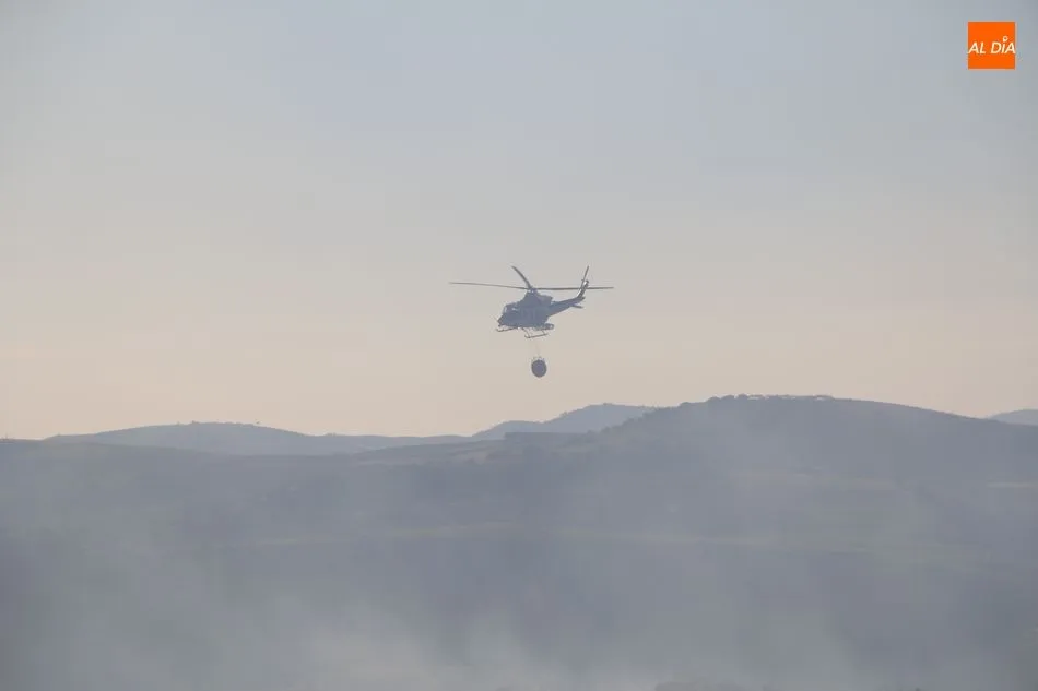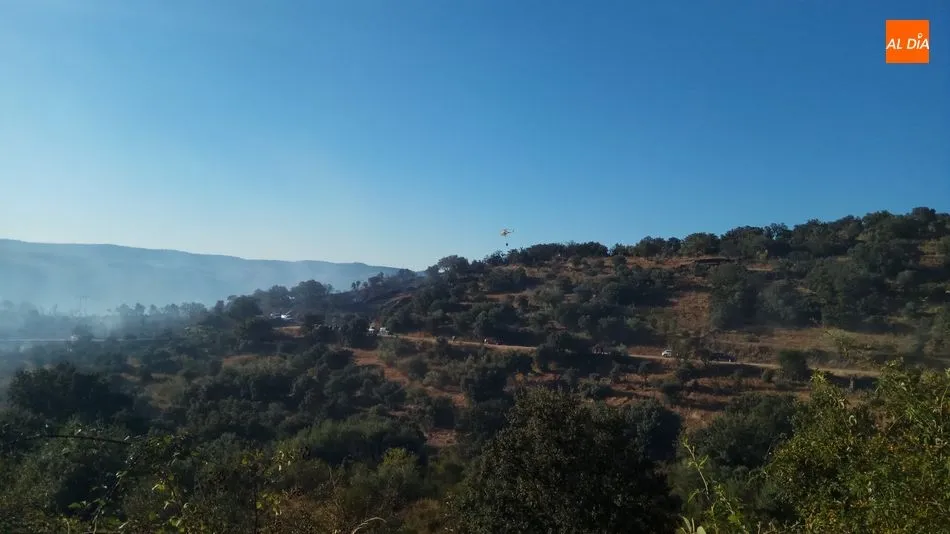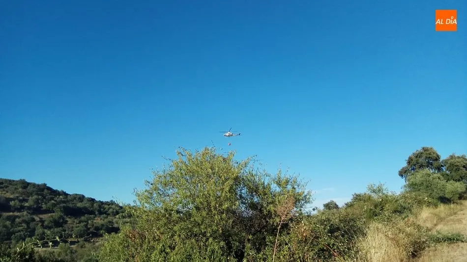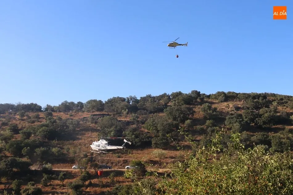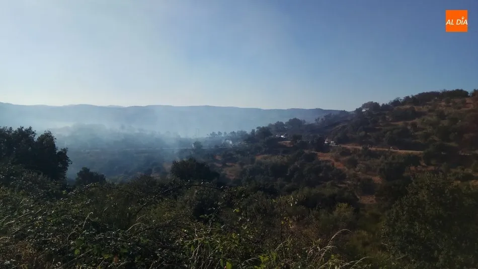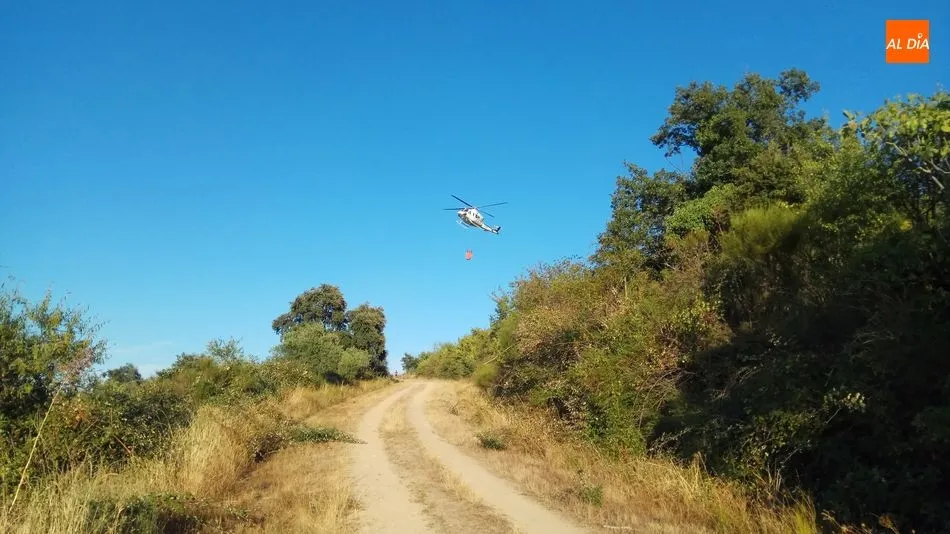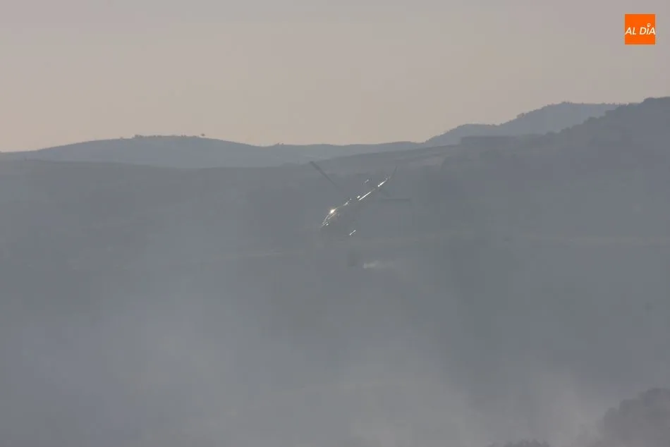 El incendio, que se produjo sobre las 17.00 horas y que ha afectado a la ladera del embalse de Saucelle en el Parque Natural Arribes del Duero, paraje de los Garduños, permanece activo aunque dos horas después de su declaración se encontraba controlado.