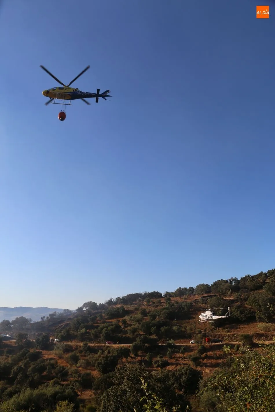 Sobre el terreno, está desplegado un amplio dispositivo formado por un técnico, cinco agentes medioambientales, diez medios aéreos (helicópteros y hidroaviones), cinco brigadas helitransportadas, la brif Pino Franqueado con base en Cáceres, dos autobombas, dos cuadrillas de tierra, dos dotaciones de bomberos, coordinado desde un puesto de mando avanzado. Además, la Junta ha solicitado medio aéreos al Ministerio para la Transición Ecológica y el Reto Demográfico.