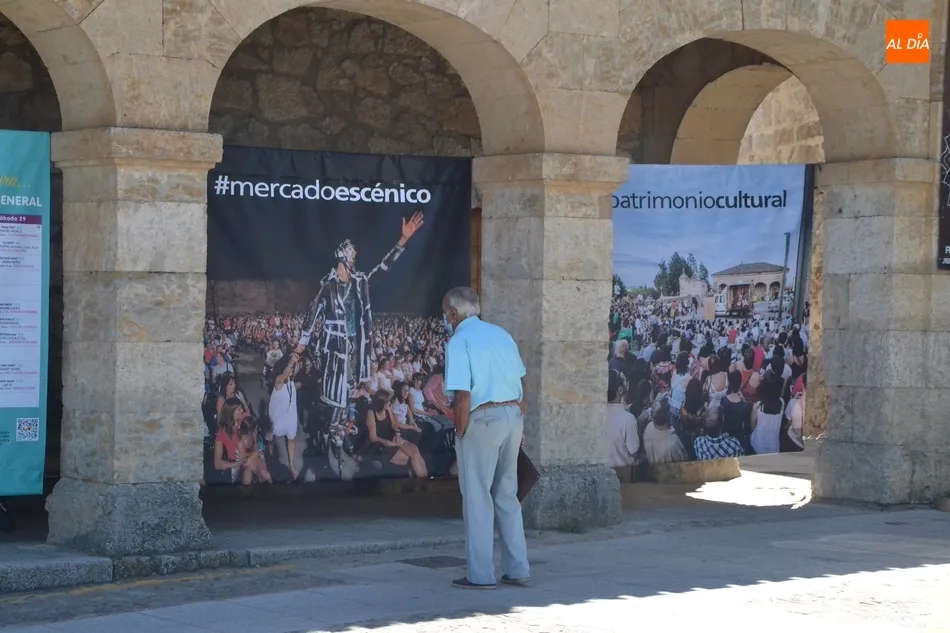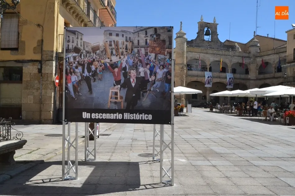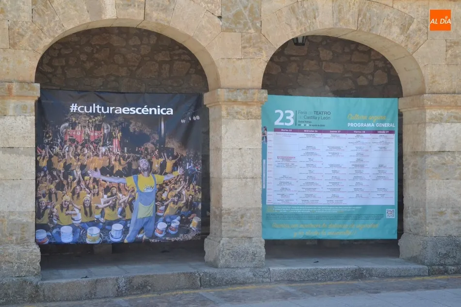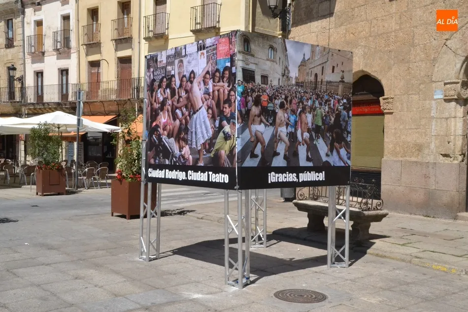 De este modo, tres de las cuatro caras laterales de ese cubo lucen fotografías de espectáculos callejeros de la Feria repletos de público: uno en la Plaza Mayor, otro en la calle Madrid (en la entrada al antiguo Cine Madrid), y otro en la calle Julián Sánchez, reivindicándose asimismo como ?escenario Histórico? y ?Ciudad Teatro?. El cuarto lateral del cubo luce el cuadrante de programación al completo de este año.