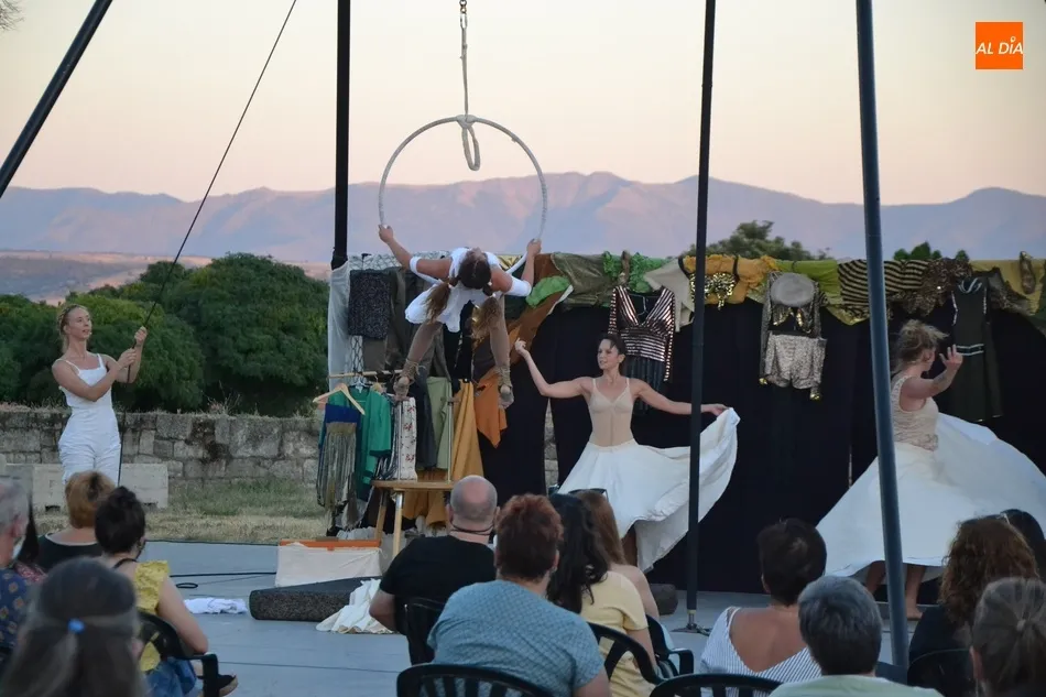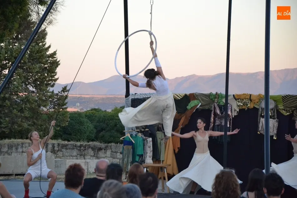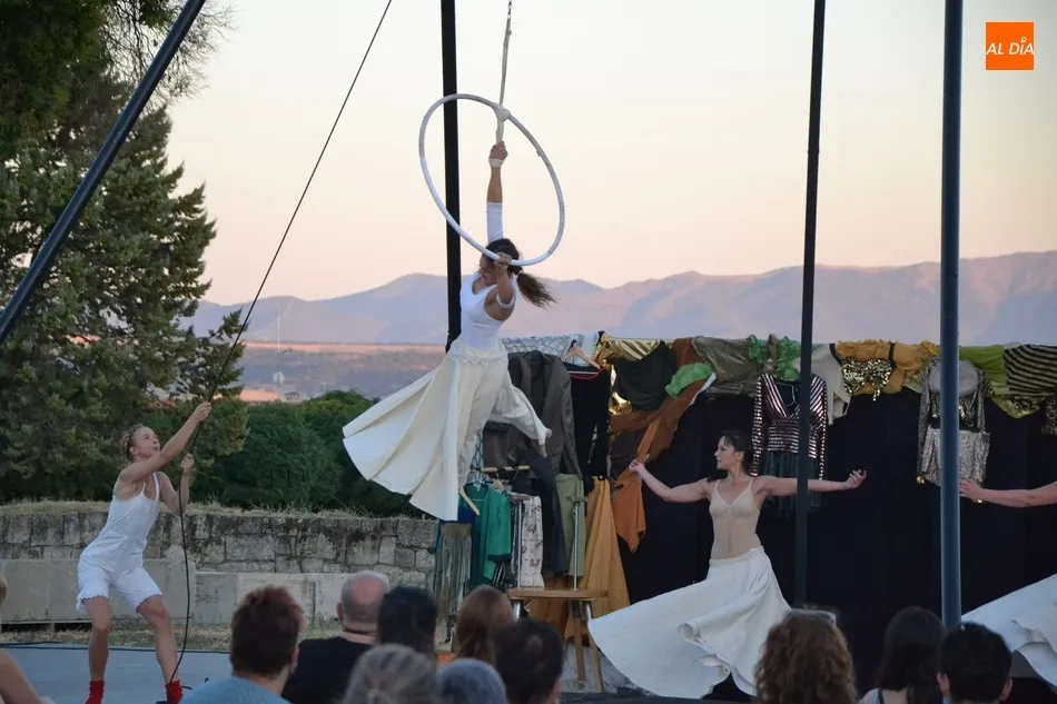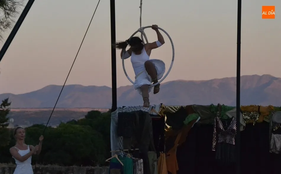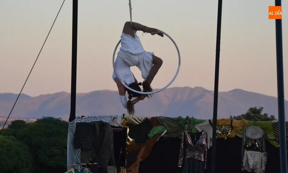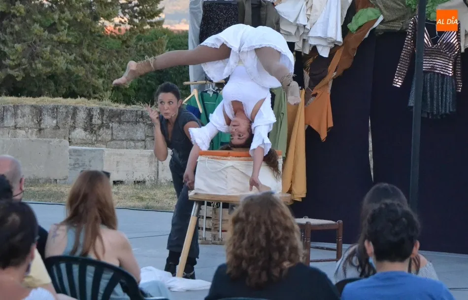 La propuesta de Locamotiva, llegada de Granada, presenta a cuatro peculiares mujeres a quienes una llamada quita el polvo de años de espera en el desván, volviendo a sentirse artistas, principalmente de acrobacias aéreas, aunque también hubo hueco para los malabares, la danza y el teatro, fusionando la dramaturgia con la técnica. Esa llamada ?obliga? a las mujeres a crear el espectáculo en sólo una hora, con lo que se quiere reflejar la precariedad de la vida artística de los tiempos actuales en los que la desesperación está muy presente.