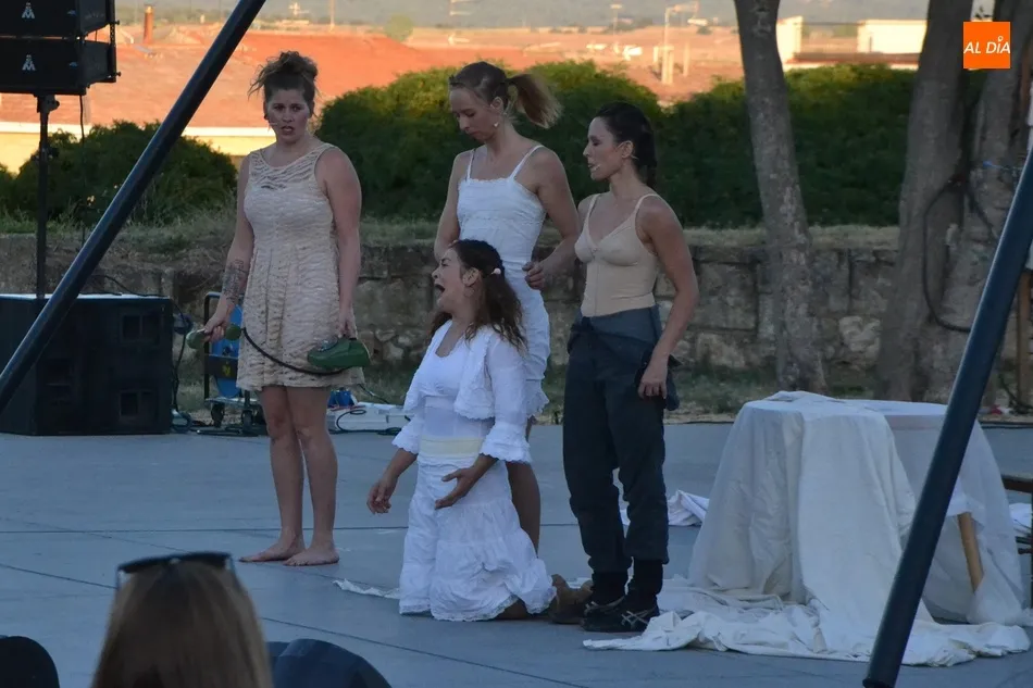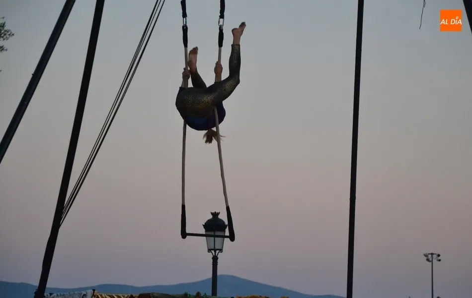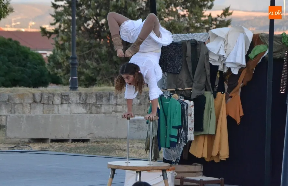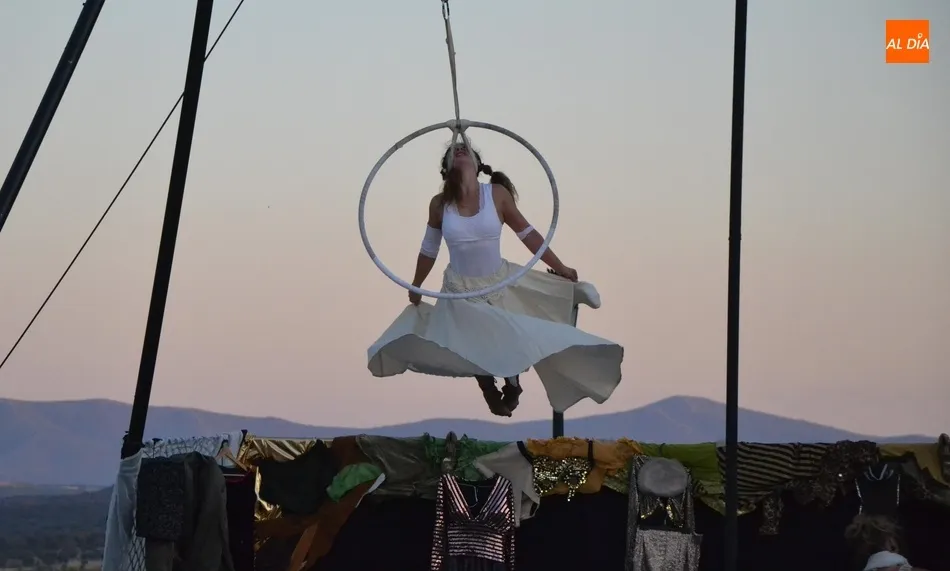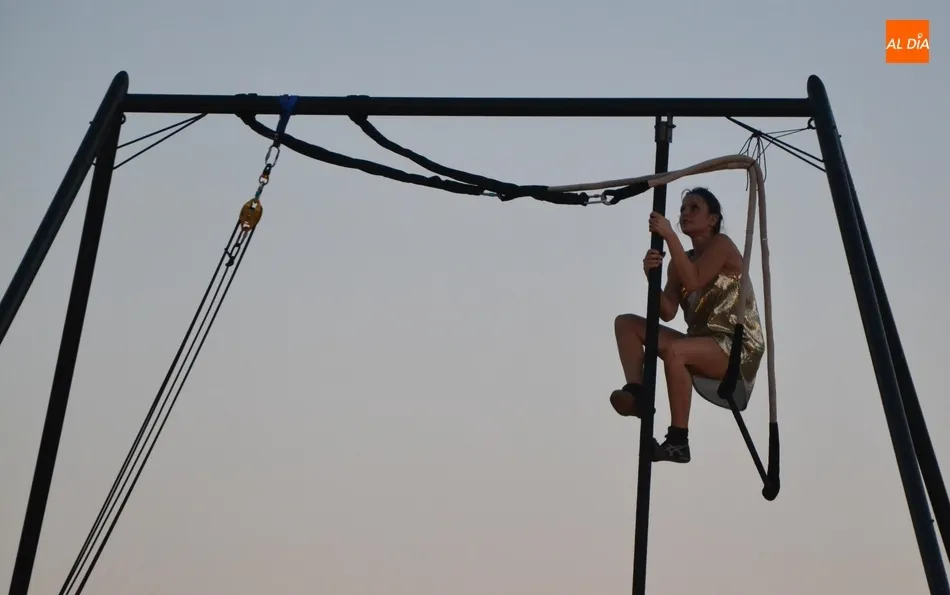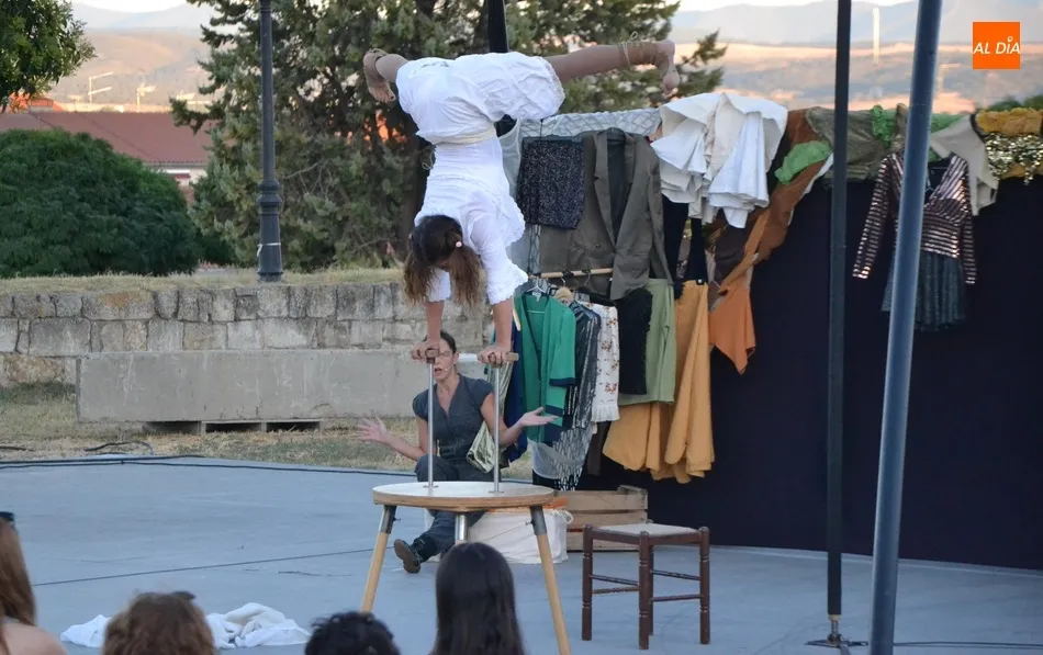 La propuesta de Locamotiva, llegada de Granada, presenta a cuatro peculiares mujeres a quienes una llamada quita el polvo de años de espera en el desván, volviendo a sentirse artistas, principalmente de acrobacias aéreas, aunque también hubo hueco para los malabares, la danza y el teatro, fusionando la dramaturgia con la técnica. Esa llamada ?obliga? a las mujeres a crear el espectáculo en sólo una hora, con lo que se quiere reflejar la precariedad de la vida artística de los tiempos actuales en los que la desesperación está muy presente.