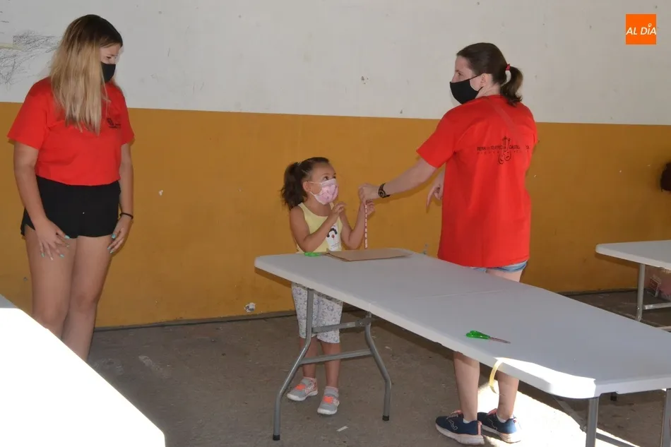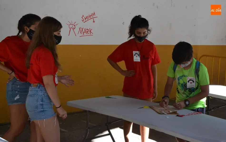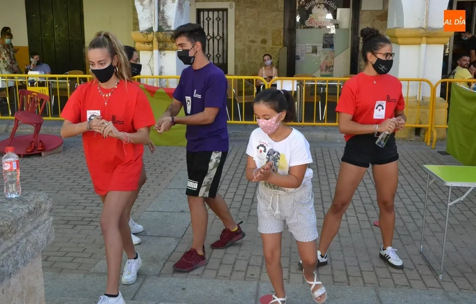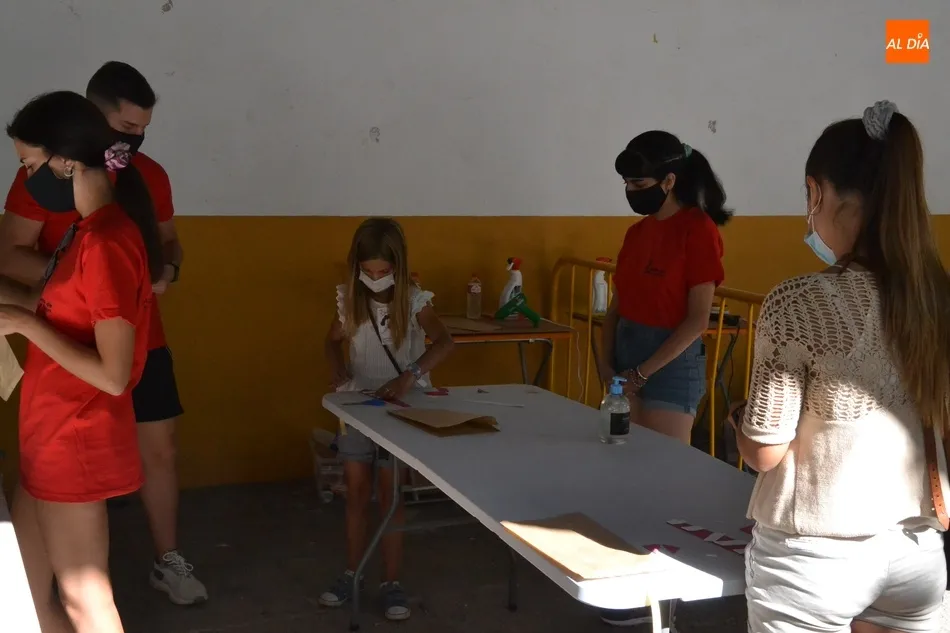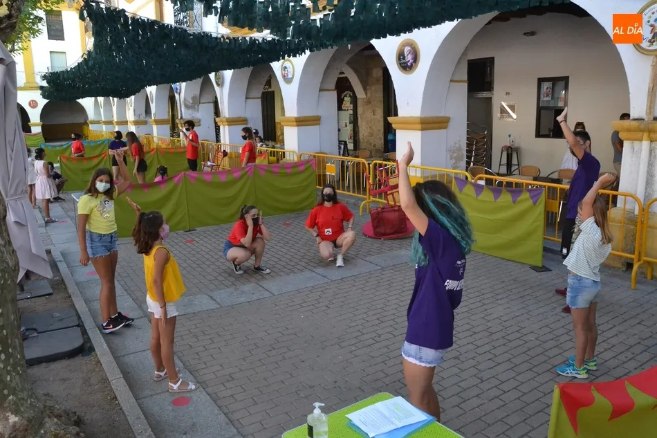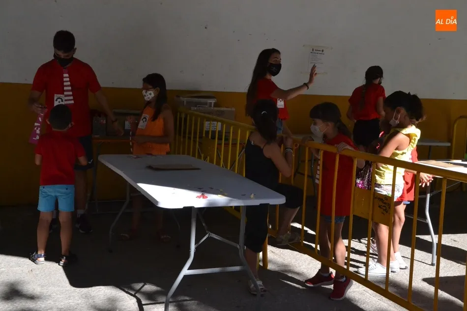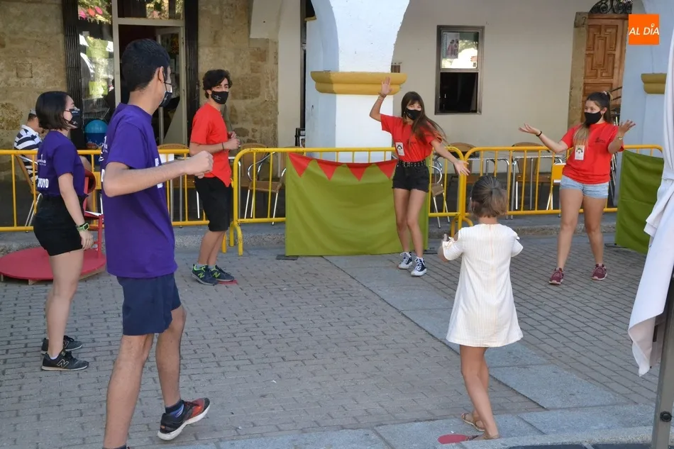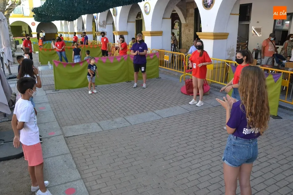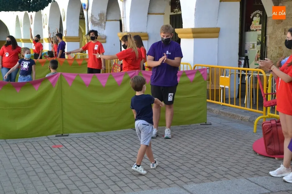 De este modo, las desinfecciones son continuas, tanto de los lugares de juego como de los propios participantes, con limpiezas constantes de manos con gel hidroalcohólico ofrecido por los monitores. Asimismo, como ya se ha explicado, este año los niños no se pueden mover libremente por la Plazuela del Buen Alcalde, sino que son guiados por monitores (mayores de 18 años, identificados con camiseta roja) e integrantes del Equipo de Apoyo (jóvenes de 16 y 17 años identificados con camiseta morada).