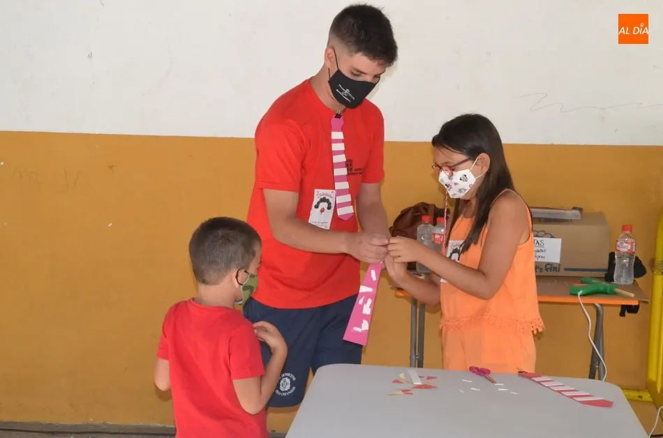 Una vez dentro del recinto, y tras firmar sus padres -u otra persona mayor de 18 años- una declaración responsable, para controlar quiénes entran, los chavales son guiados por las diversas actividades de la Plazuela, cuyos árboles han sido decorados con unas corbatas gigantes, que los niños pueden fabricar en un tamaño ?normal? en la emblemática zona de talleres plásticos y de animación de los soportales, que este año cuentan con el menor material posible para evitar riesgos.