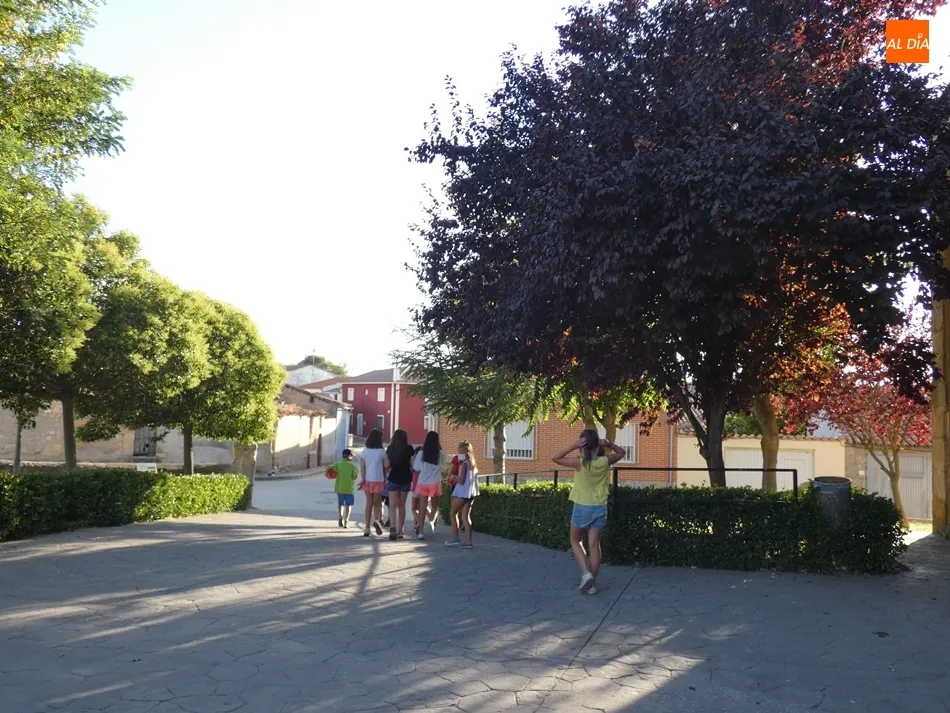 Otros vecinos aprovechan los bancos situados junto al regato que pasa por el centro de la localidad. Es pleno agosto y lleva una lámina de agua que aporta cierto frescor al lugar. Este año, las piscinas no han abierto sus puertas.