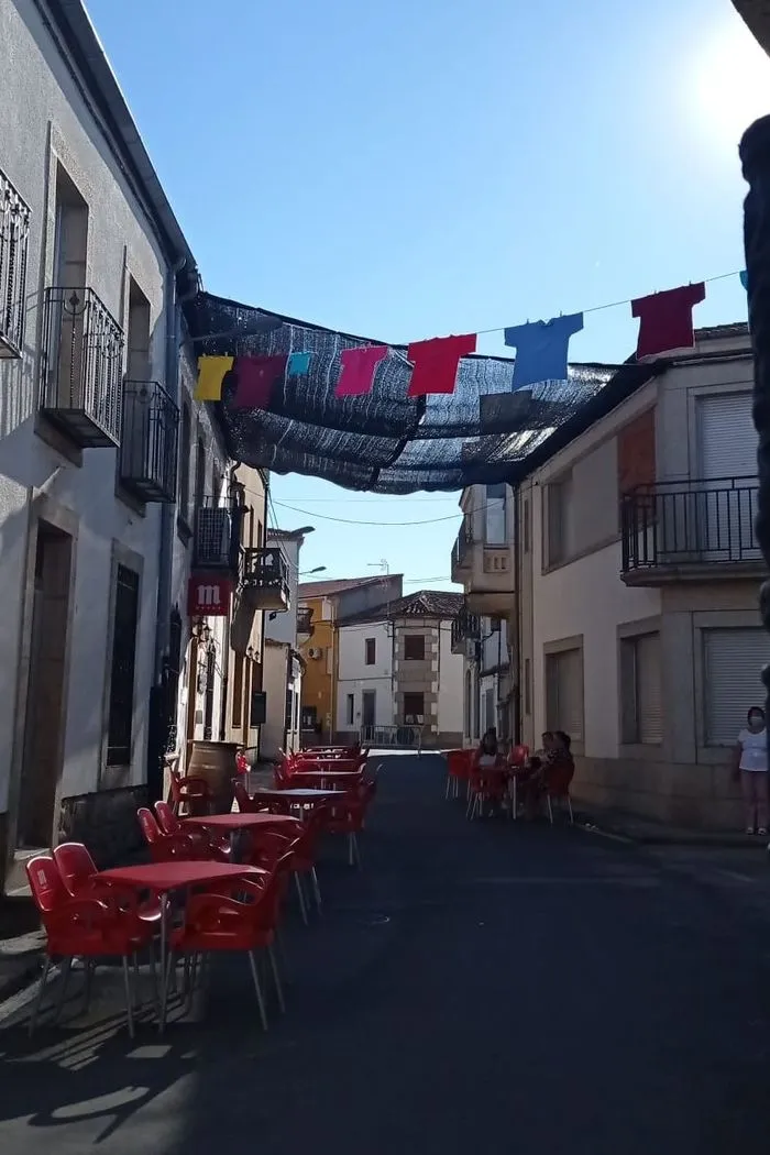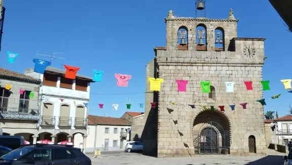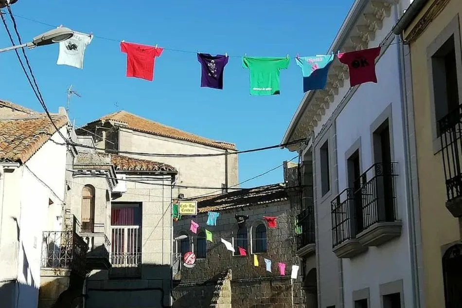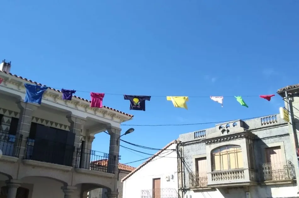 No en vano, para rememorar este esperado día la comisión de actividades del Ayuntamiento ha querido rememorar este día de forma simbólica vistiendo de color la Plaza y varias calles de la localidad con la colocación, a modo de banderines festivos, de las camisetas de cada una de las peñas que animan estas fiestas.