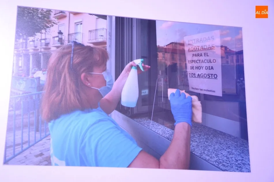 La muestra consiste en una serie de imágenes tomadas por Gerardo Sanz a lo largo de las últimas semanas en distintos puntos de la región en las que se plasma cómo las Artes Escénicas se están adaptando a la ?nueva normalidad? provocada por la pandemia del coronavirus, es decir, cómo se guardan las distancias de seguridad, se usan gel hidroalcohólico y mascarilla, o hay desinfecciones continuas.