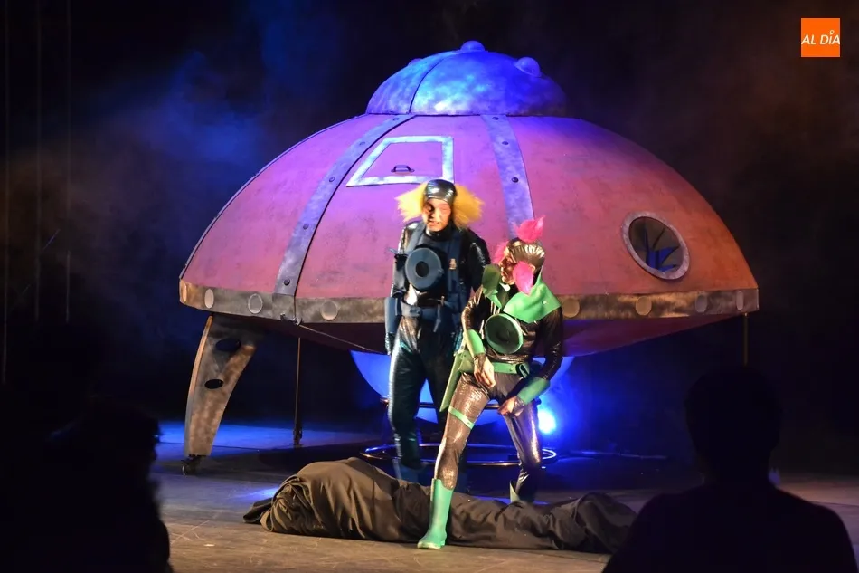 Posteriormente, en el Espacio Afecir, fue turno para el estreno de Crash. Un planeta emocionante, una propuesta de la compañía extremeña Asaco Producciones que hizo que aterrizase en el escenario nada más y nada menos que una nave espacial con tres extraterrestres a bordo, que habían llegado a la Tierra para entrar en contacto con los terrícolas, de quienes descubren sus esencias del amor, la solidaridad, el humor y la creatividad, que les permiten arreglar la nave que se les había estropeado.