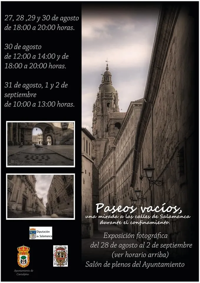 El salón de plenos del Ayuntamiento de Villoria acoge la exposición de fotografías ?Paseos vacíos, una mirada a las calles de Salamanca? del cantalpinés David Martín Pinto.