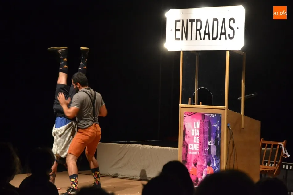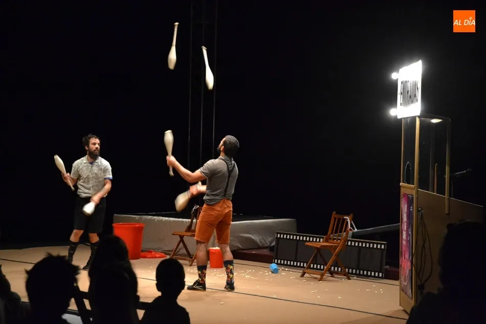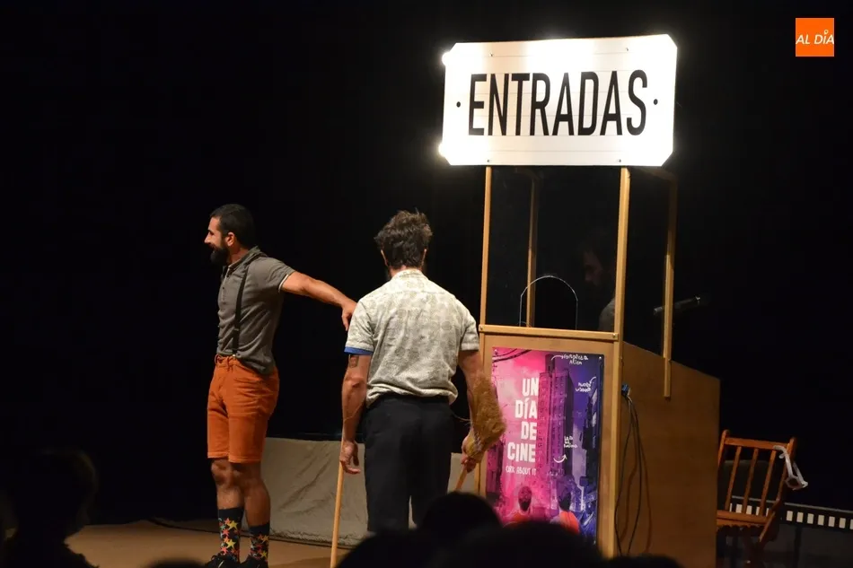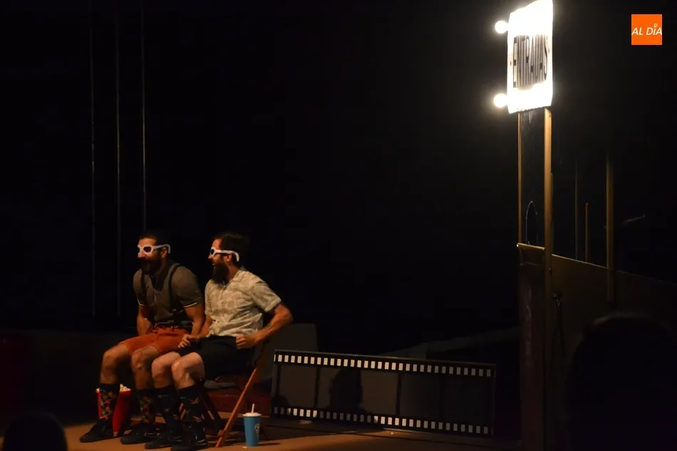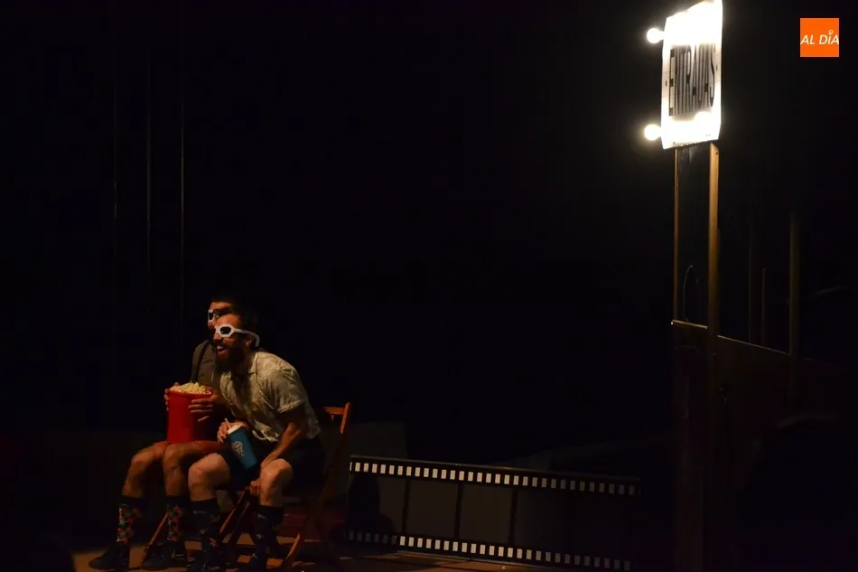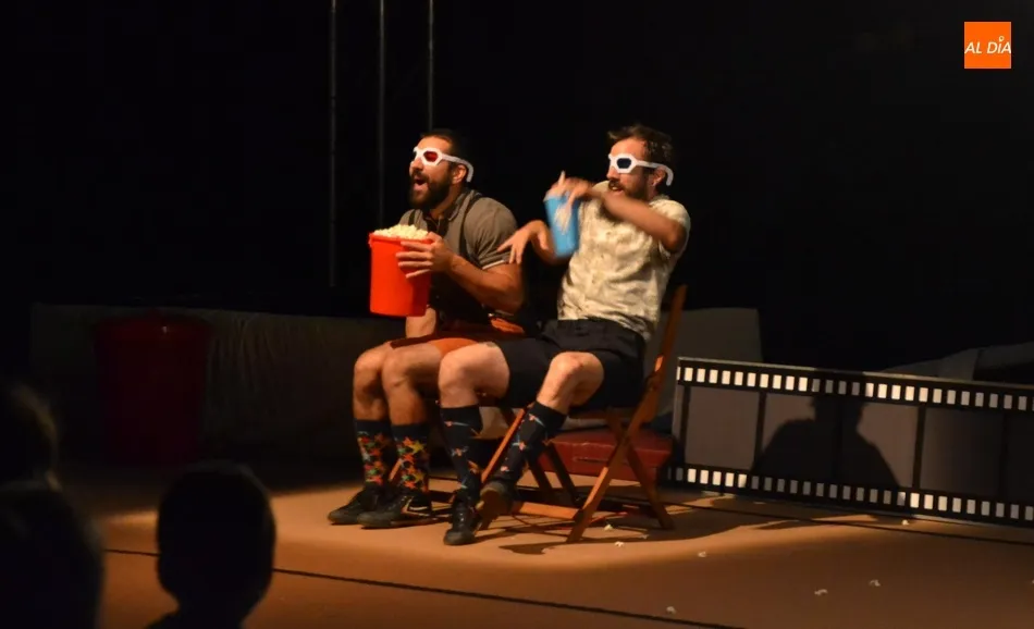 El espectáculo tiene como protagonistas a dos apasionados del mundo del cine (interpretados por Miguel Molinero García y David Tornadijo Arce), quienes pasan de estar viendo su primera película en 3D, a ser ellos mismos los protagonistas de una de toques circenses, con diferentes números de acrobacias y malabares que hicieron las delicias de los niños congregados en el Espacio Afecir.
