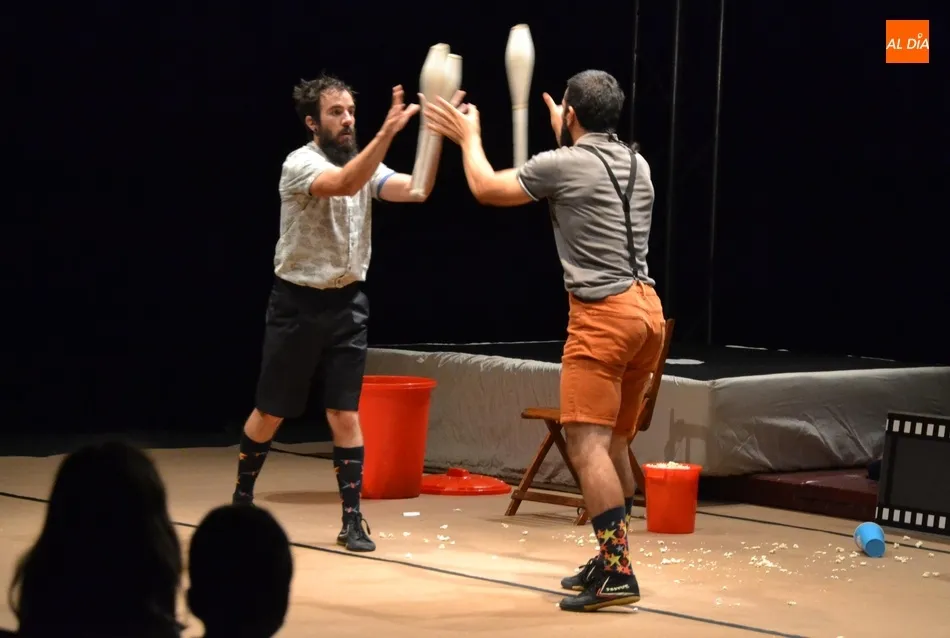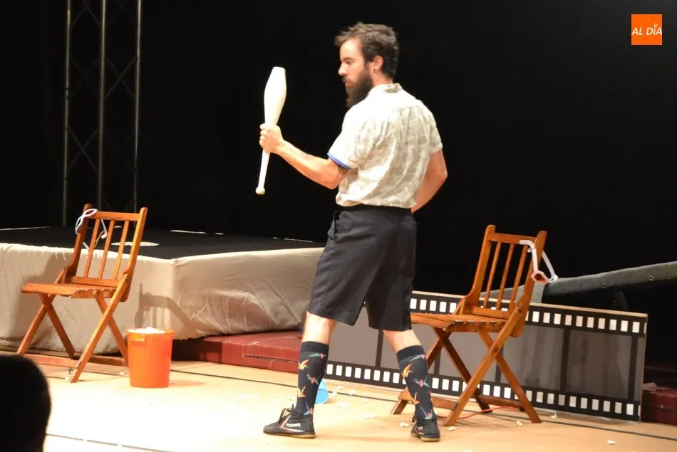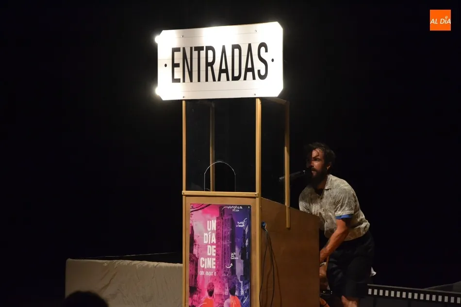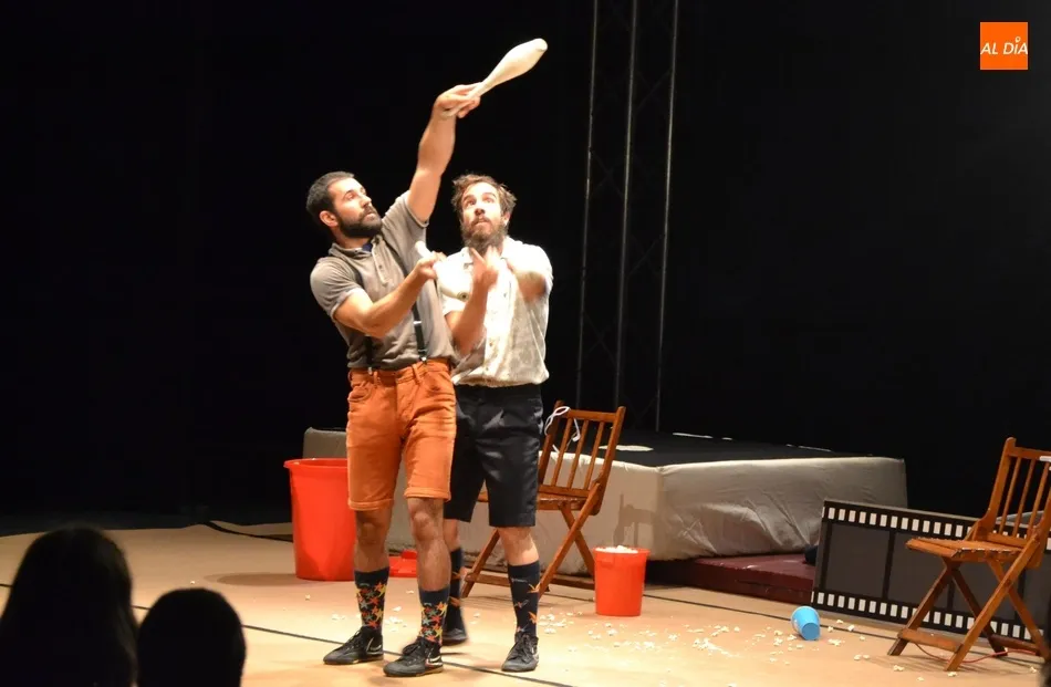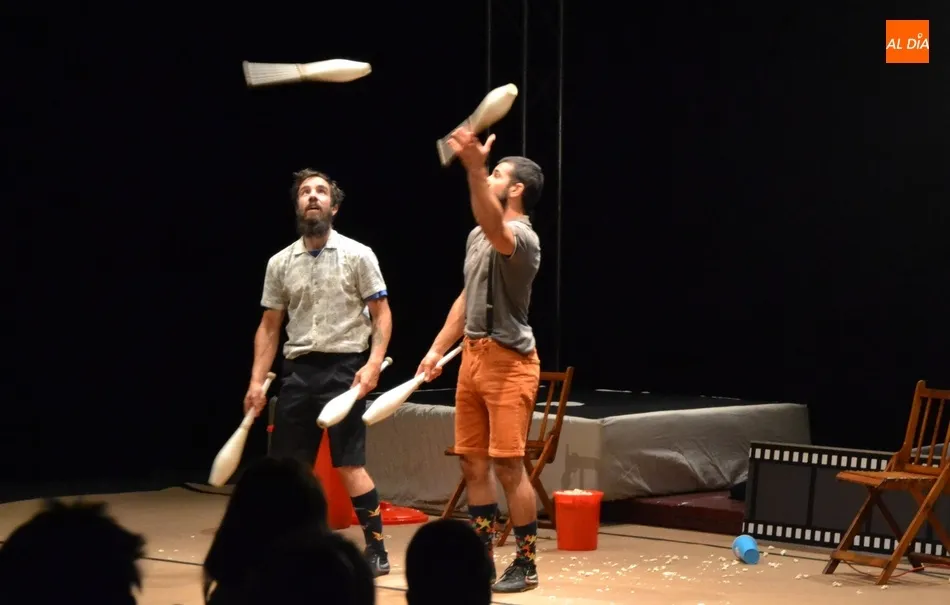 El espectáculo tiene como protagonistas a dos apasionados del mundo del cine (interpretados por Miguel Molinero García y David Tornadijo Arce), quienes pasan de estar viendo su primera película en 3D, a ser ellos mismos los protagonistas de una de toques circenses, con diferentes números de acrobacias y malabares que hicieron las delicias de los niños congregados en el Espacio Afecir.