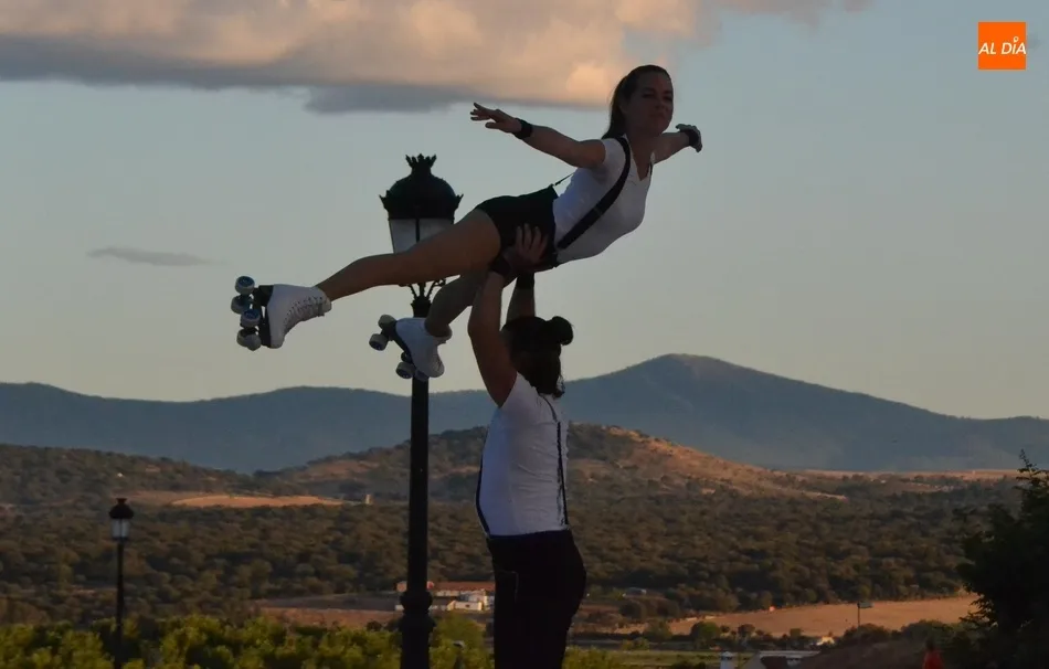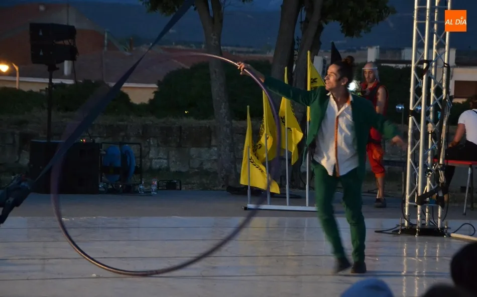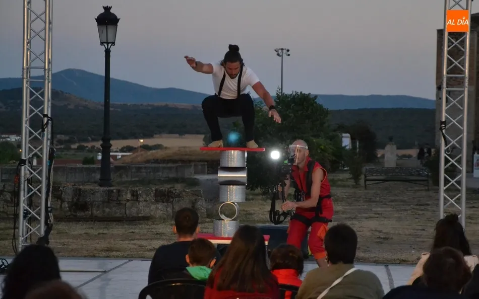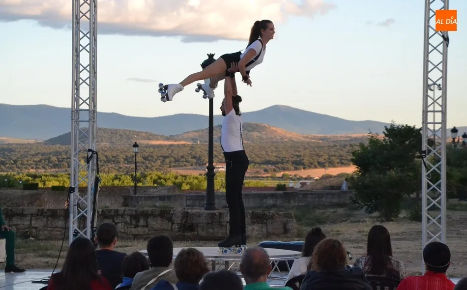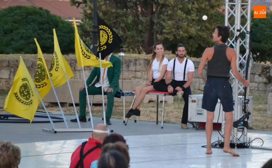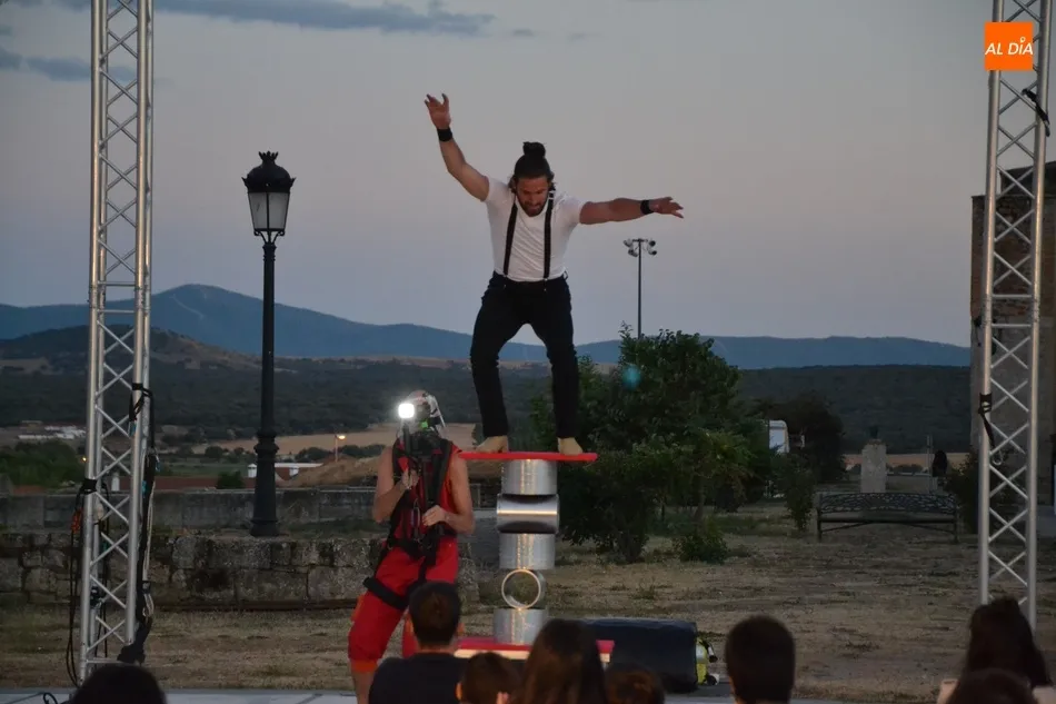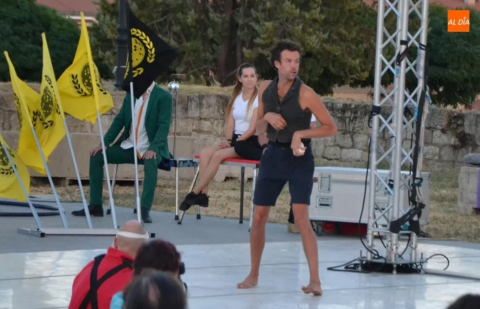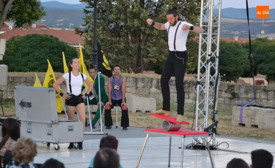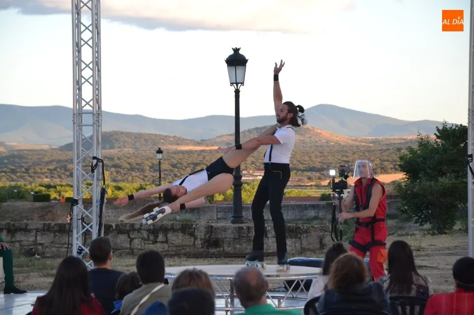El eje de este espectáculo (que el viernes hizo su estreno absoluto en Ciudad Rodrigo) fue la sucesión de diversos números de circo, como dos patinadores bailando en círculos en una pequeña superficie circular, acrobacias en altura con un aro, malabares por la espalda, un número de tartazos en el que el público es protagonista, u otro con una rueda Cyr, antes de llegar a la gran traca final: un salto desde 10 metros de altura por parte de uno de los integrantes del equipo hacia un colchón de aire.