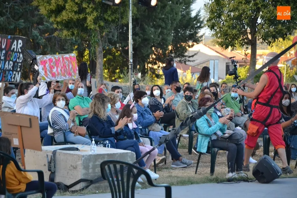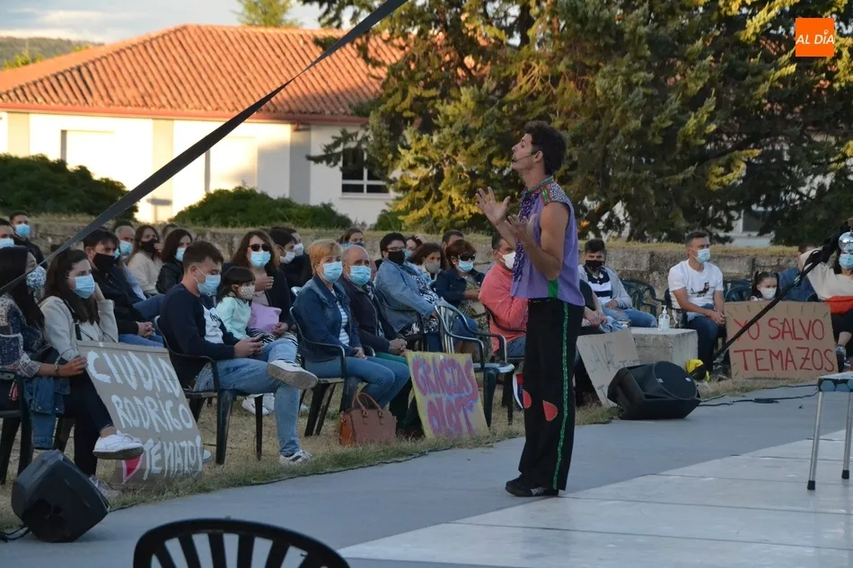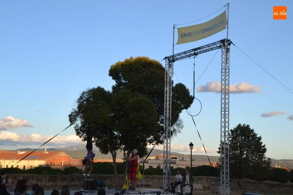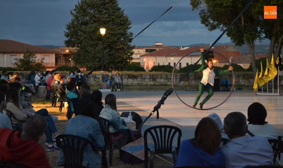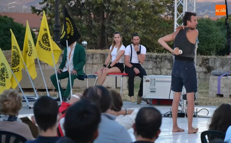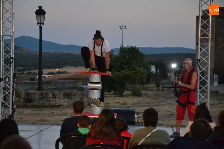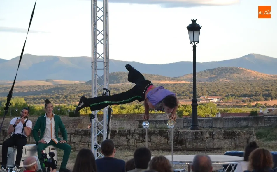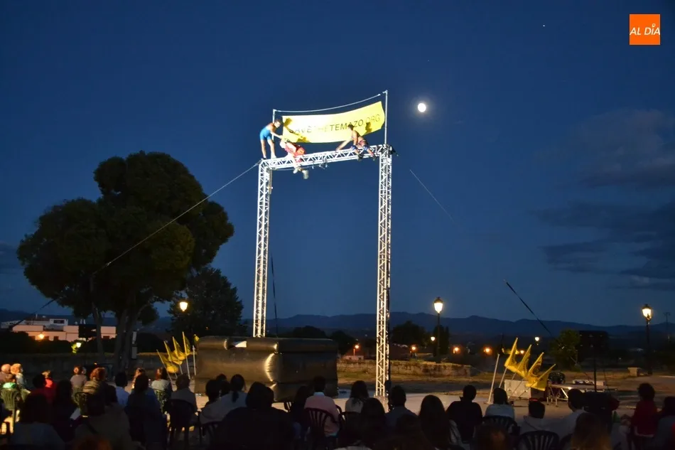 El eje de este espectáculo (que el viernes hizo su estreno absoluto en Ciudad Rodrigo) fue la sucesión de diversos números de circo, como dos patinadores bailando en círculos en una pequeña superficie circular, acrobacias en altura con un aro, malabares por la espalda, un número de tartazos en el que el público es protagonista, u otro con una rueda Cyr, antes de llegar a la gran traca final: un salto desde 10 metros de altura por parte de uno de los integrantes del equipo hacia un colchón de aire.